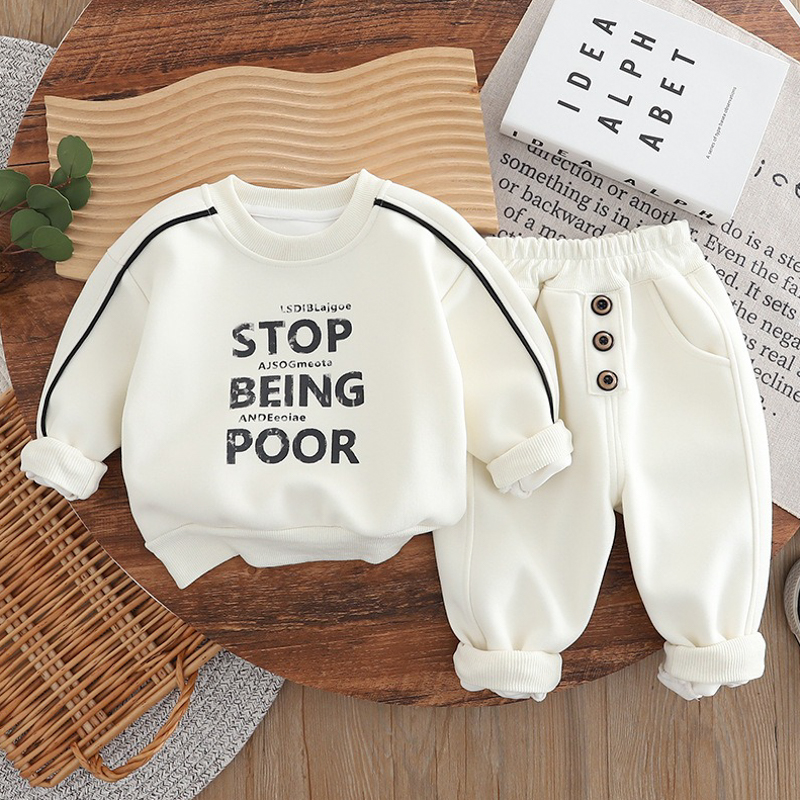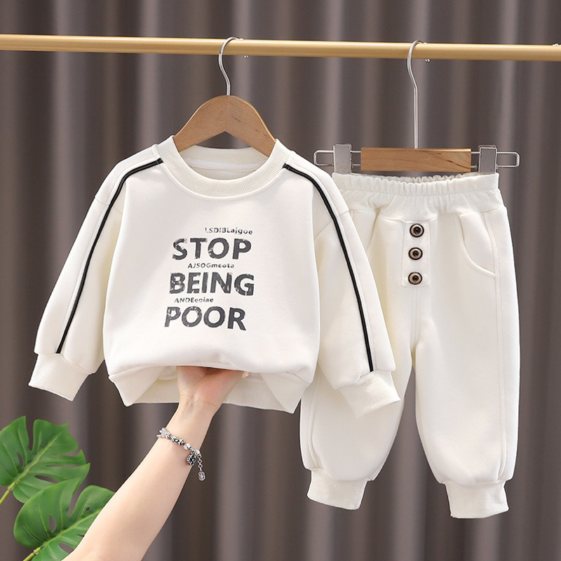【BE203】運動風字母長袖長褲套裝 (2色)