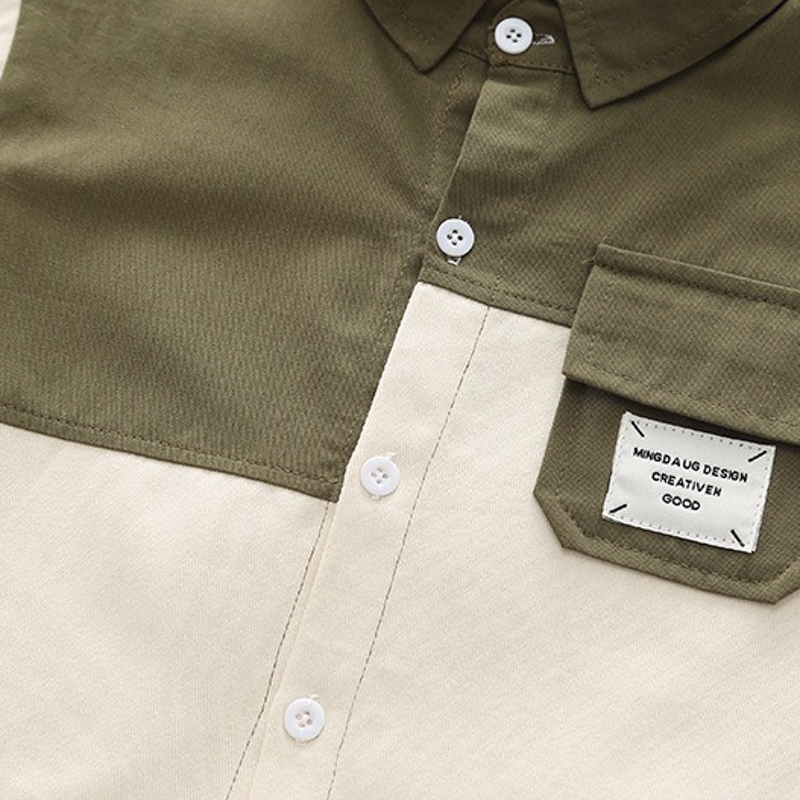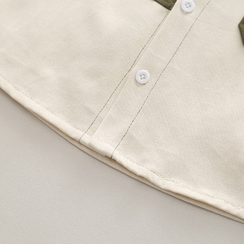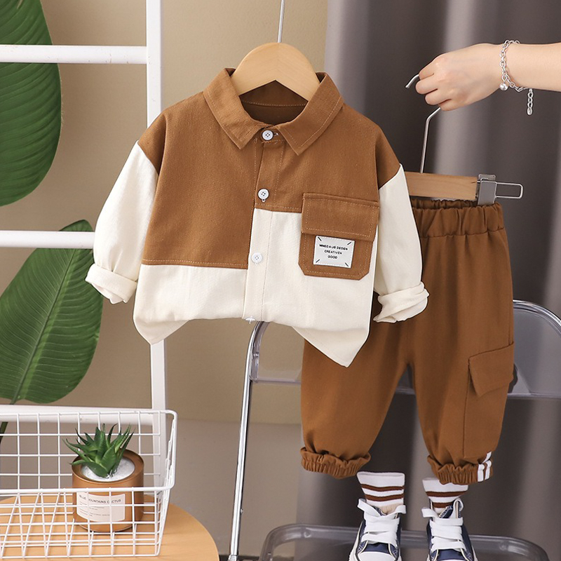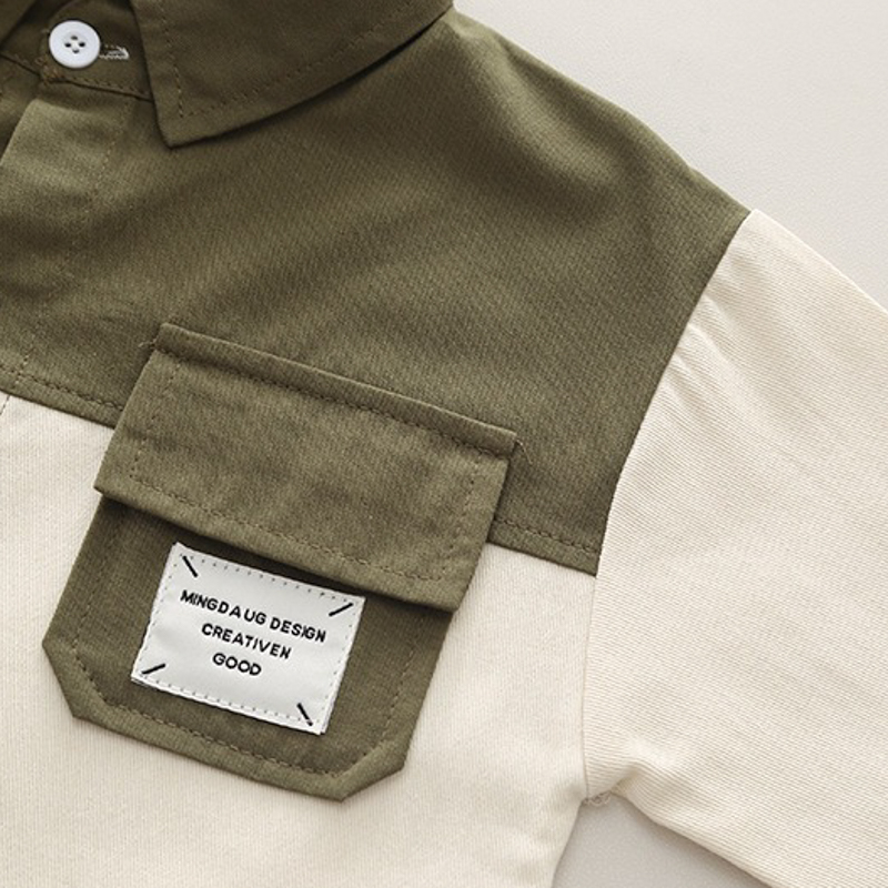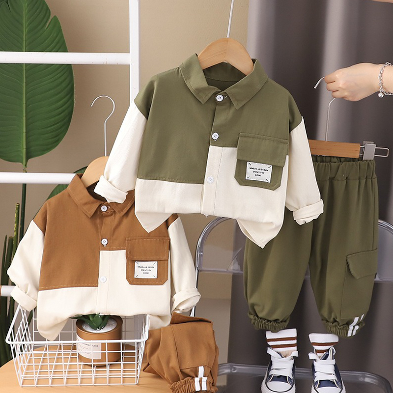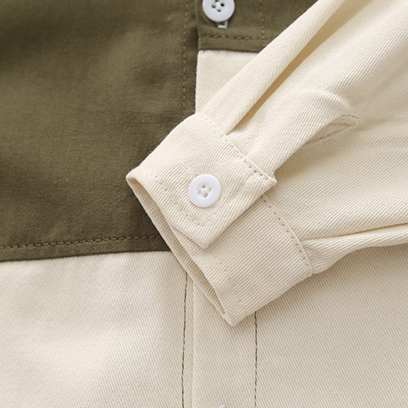 【BE205】日系拼色工裝長袖長褲套裝(2色)