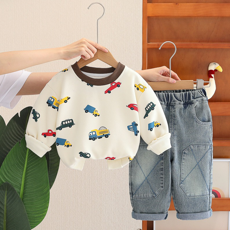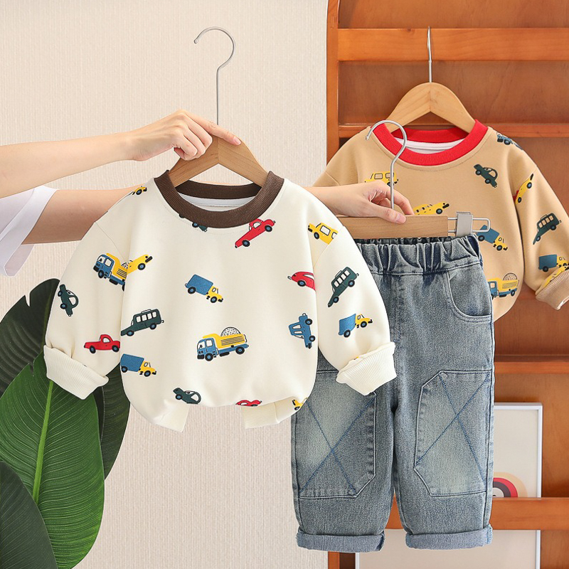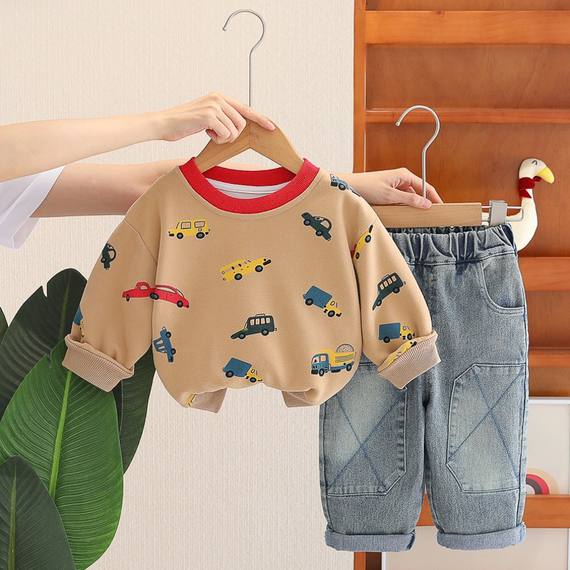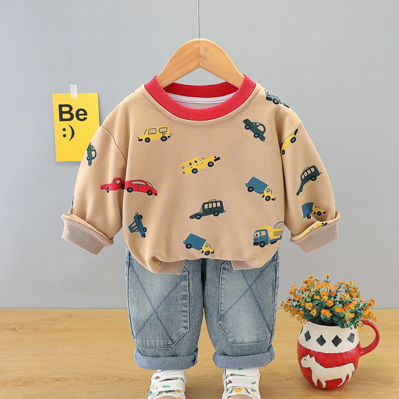 【BE218】人氣小車車長袖長褲套裝(2色)