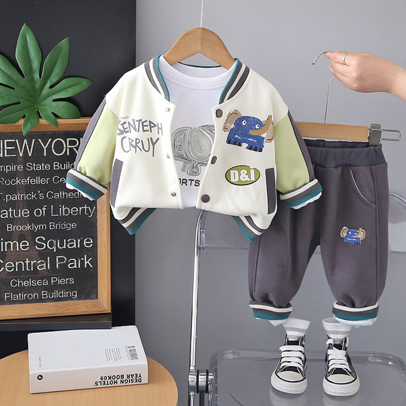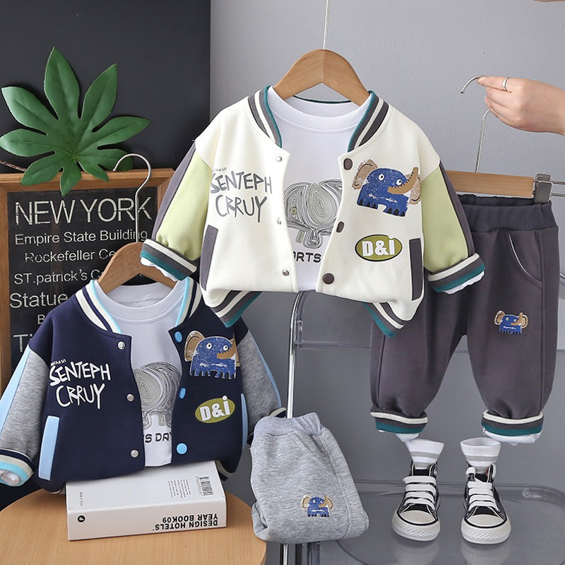 【BE221】大象3套件長袖長褲棒球裝(2色)