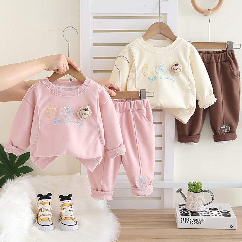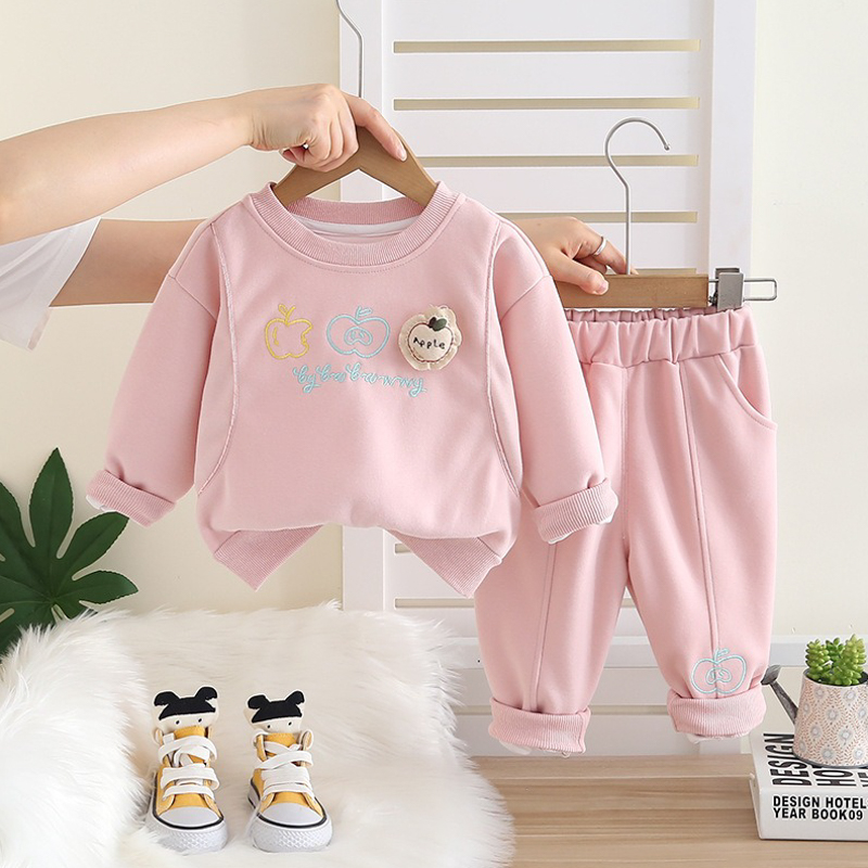 【BE231】小蘋果咬一口長袖長褲套裝 (2色)