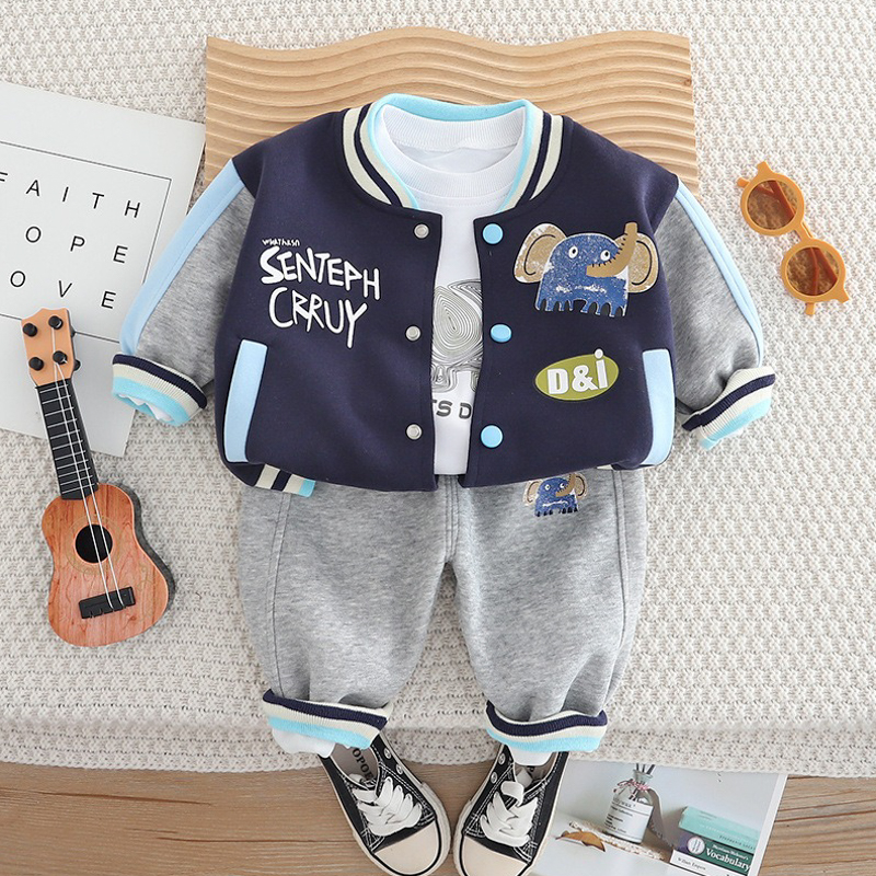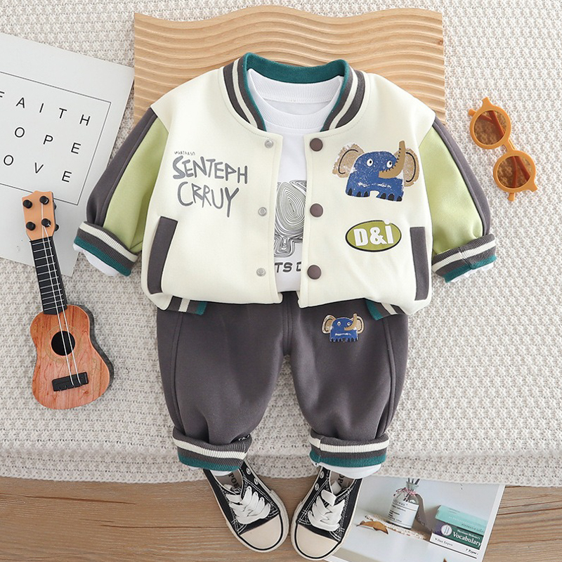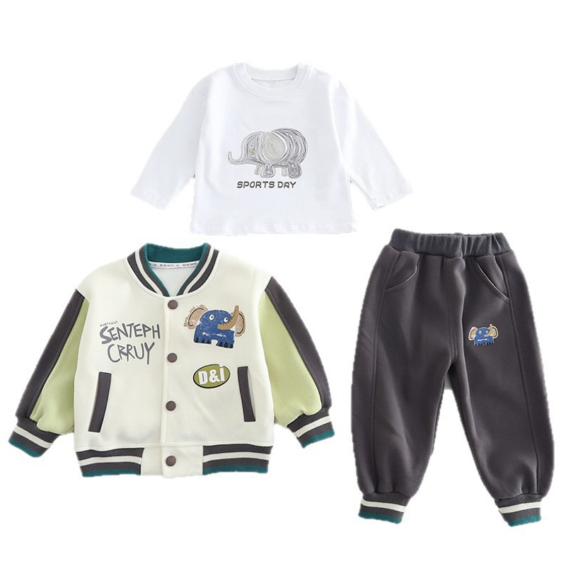 【BE233】塗鴉大象撞色長袖長褲套裝 3件組(2色)