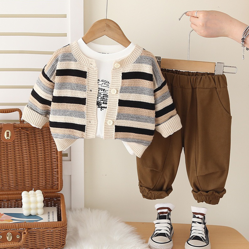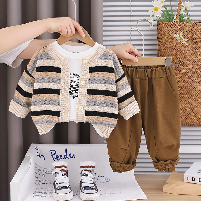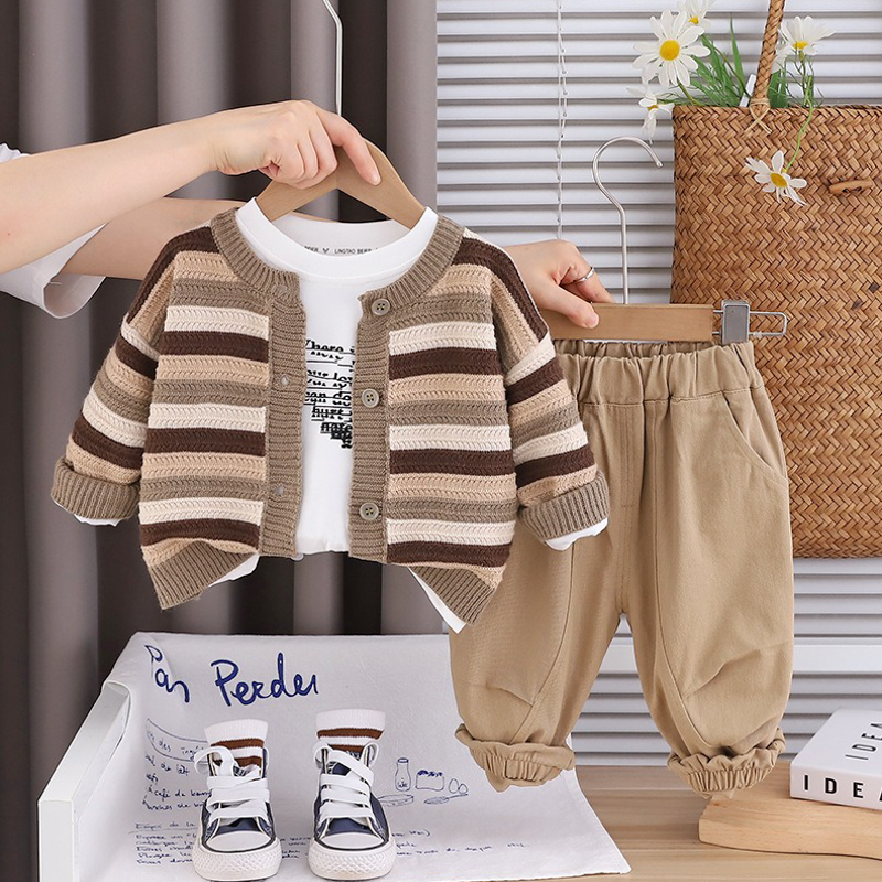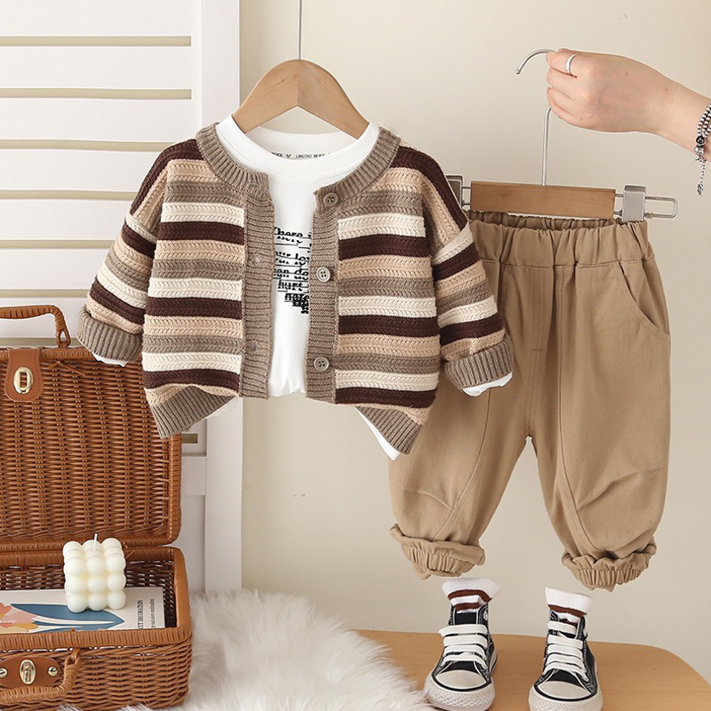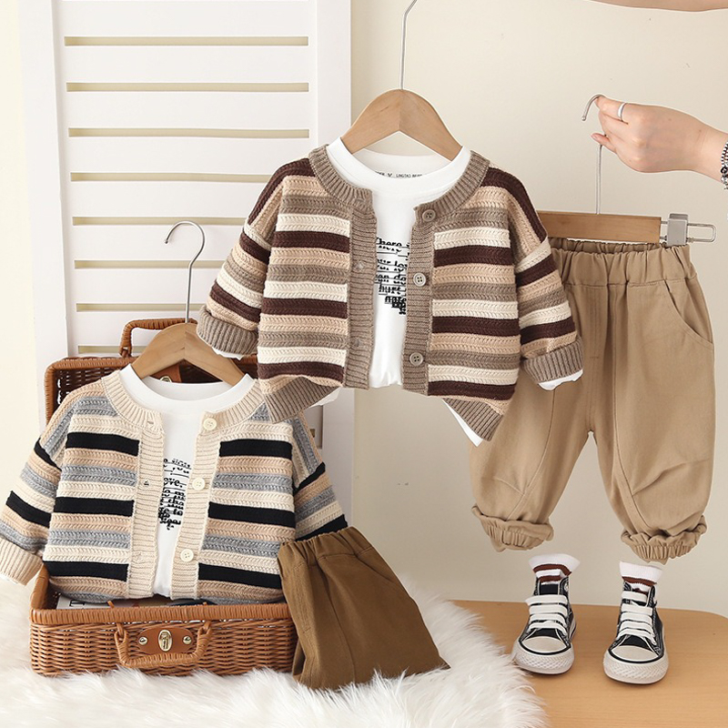【BE237】韓版歐巴休閒橫條長袖針織外套 3件組(2色)