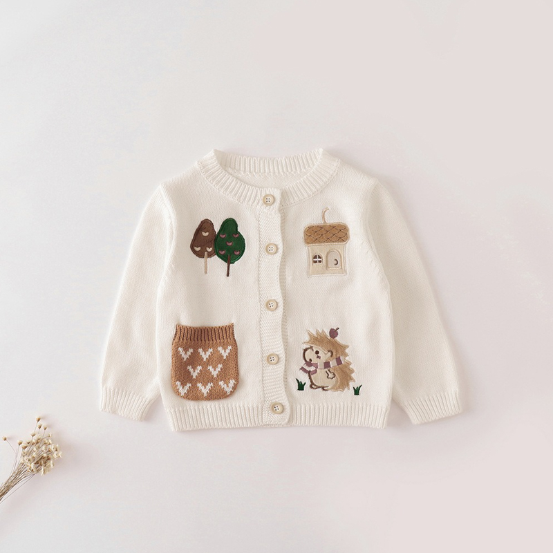 可愛精緻的女童針織長袖外套,