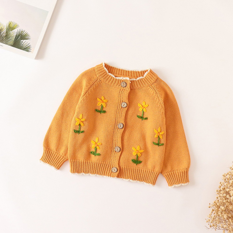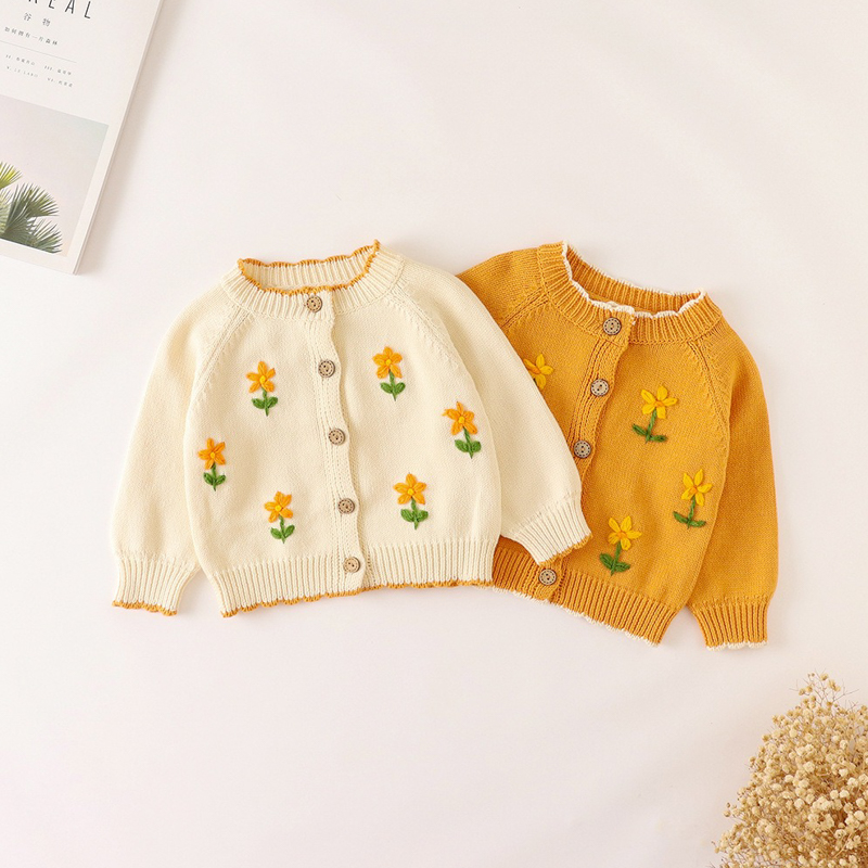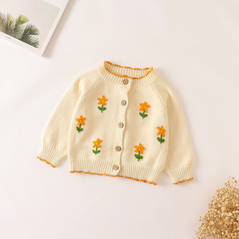 可愛精緻的女童針織長袖外套,