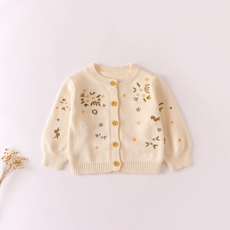 可愛精緻的女童針織長袖外套,