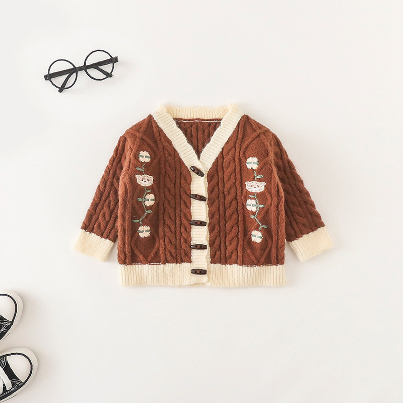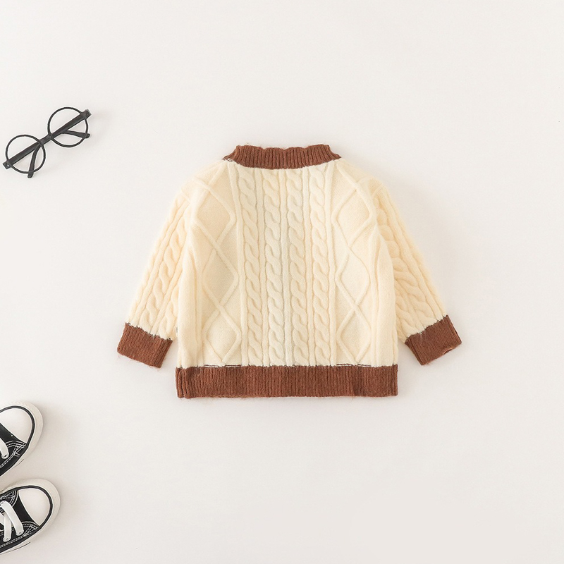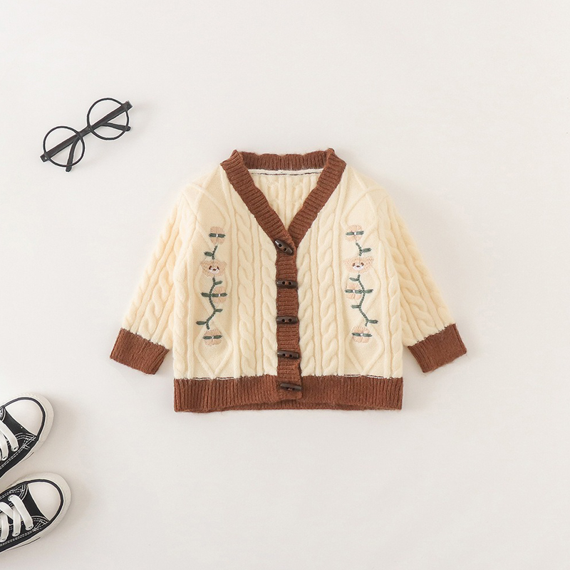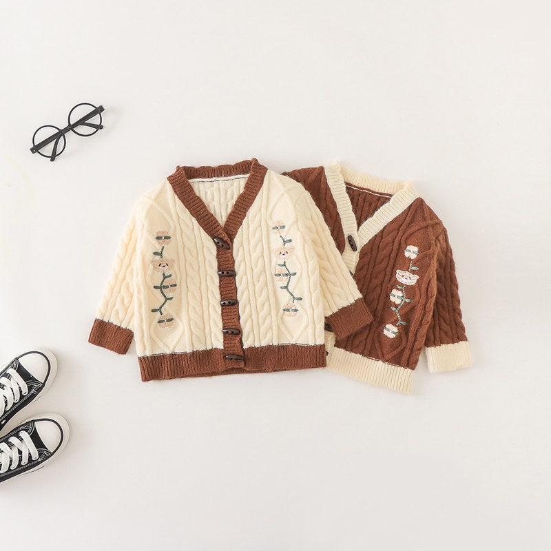 【BO103】撞色刺繡麻花針織長袖外套(2色)