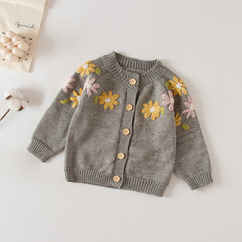 可愛精緻的女童針織長袖外套,