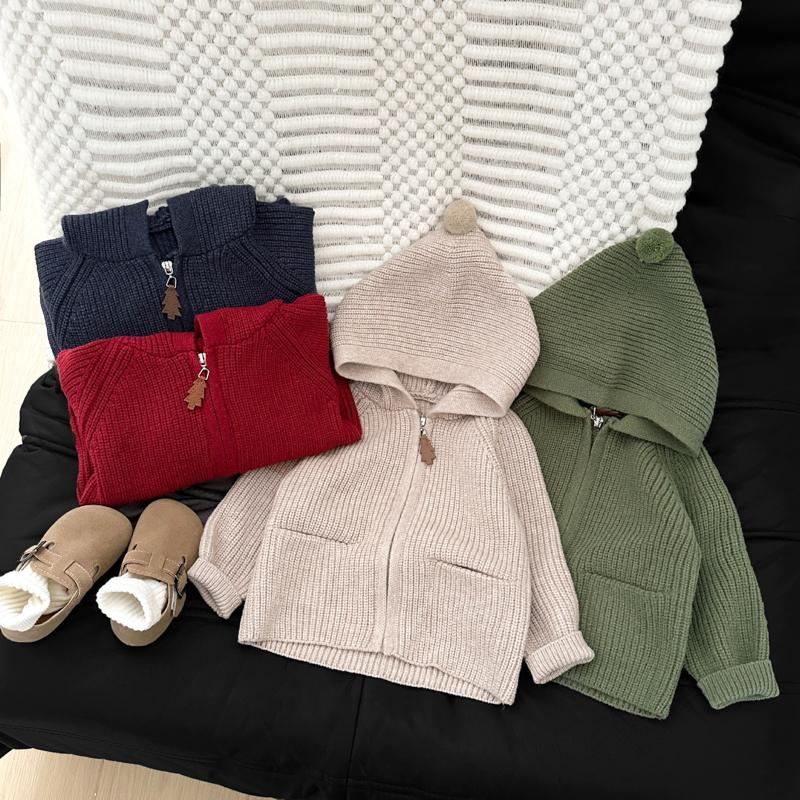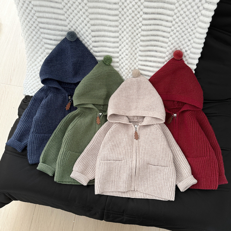 可愛精緻的女童針織長袖外套,