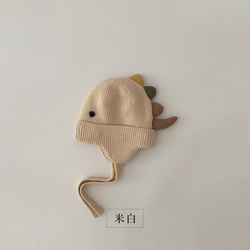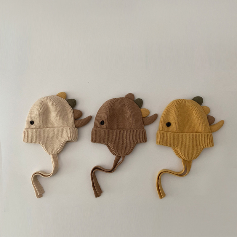 【BH047】韓系綁帶小恐龍針織毛線帽(3色)