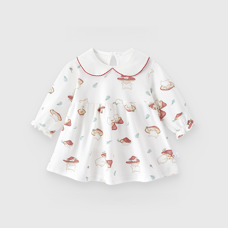 【BG919】日系小蘑菇純棉長袖洋裝(1色)