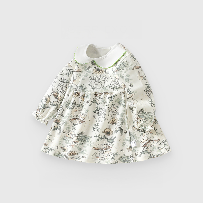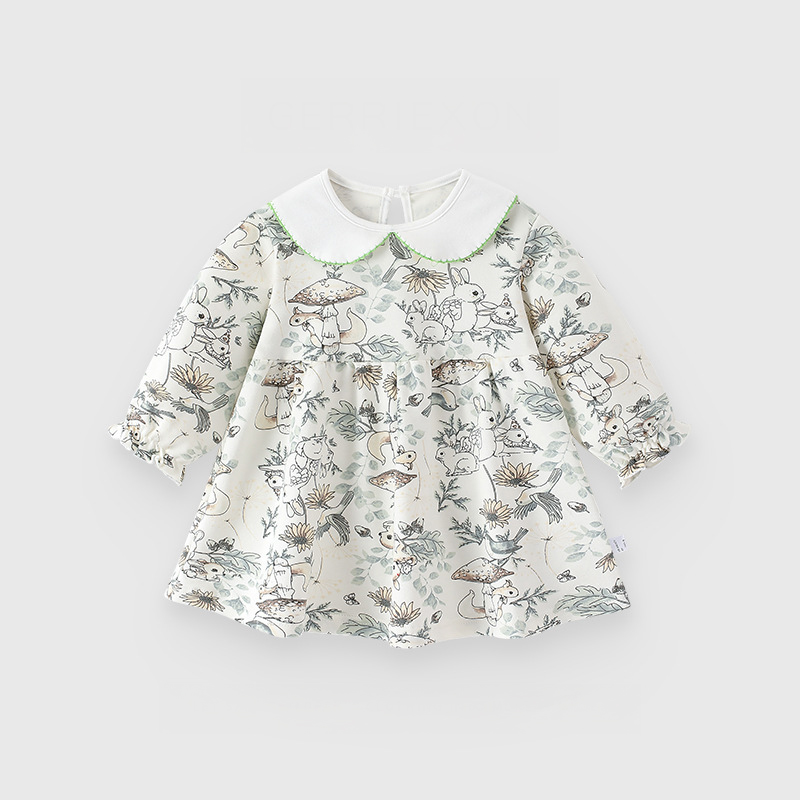 【BG920】日系森林小動物純棉長袖洋裝(1色)