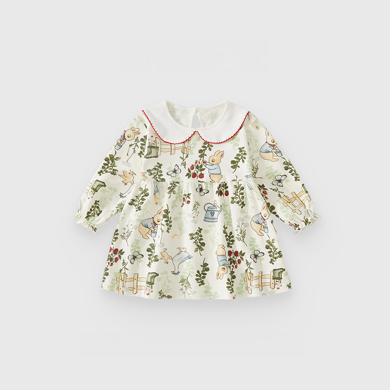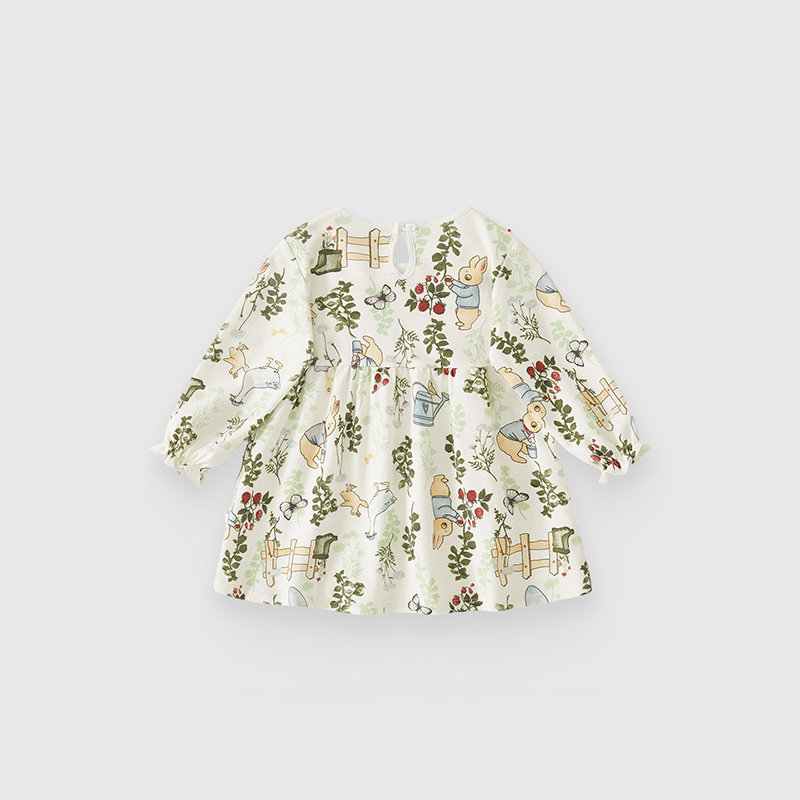 【BG922】日系草莓園兔兔純棉長袖洋裝(1色)