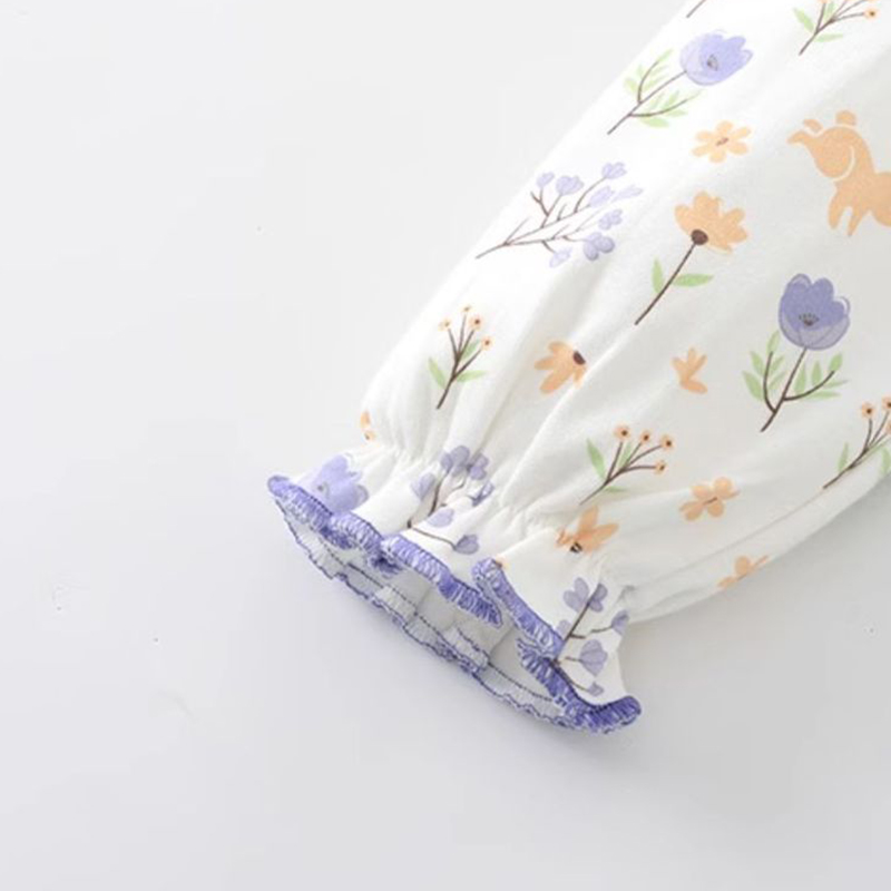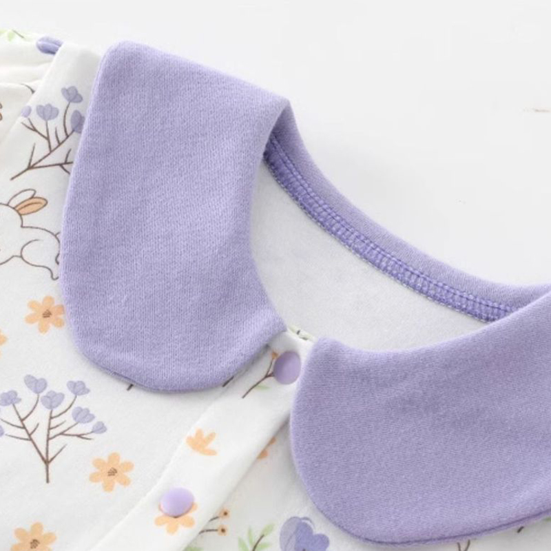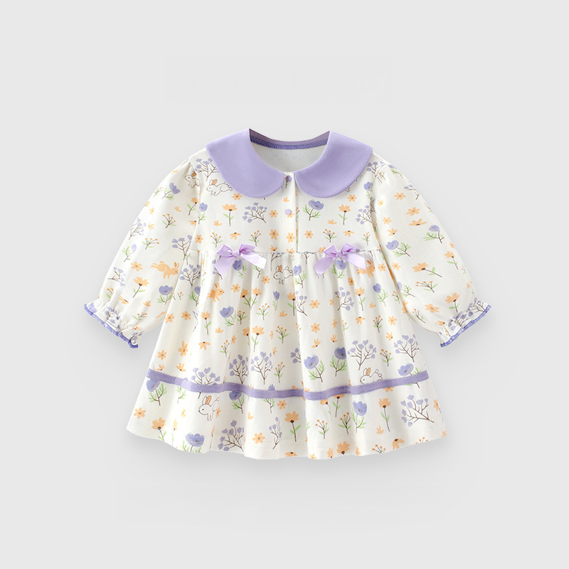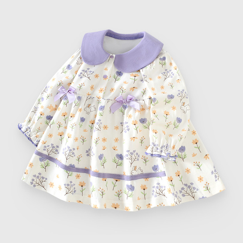 【BG915】日系甜美紫色蝴蝶結純棉長袖洋裝(1色)