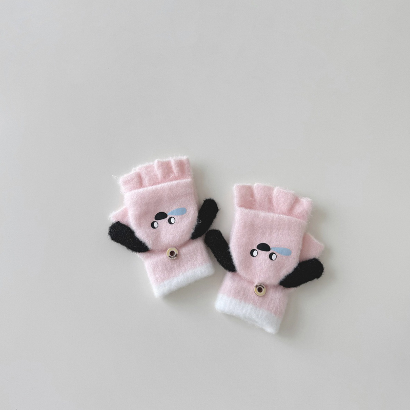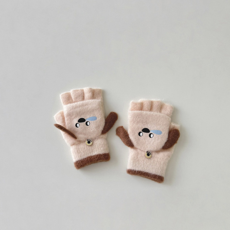 【BL023】兒童|韓版鼻涕狗狗可脫式加厚保暖手套(半指)(4色)