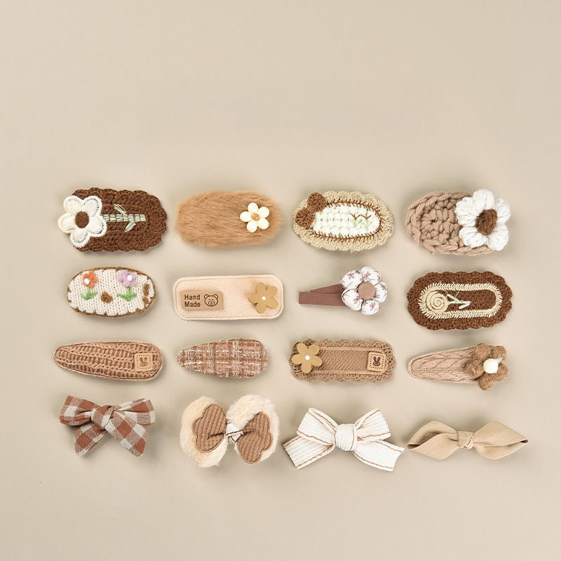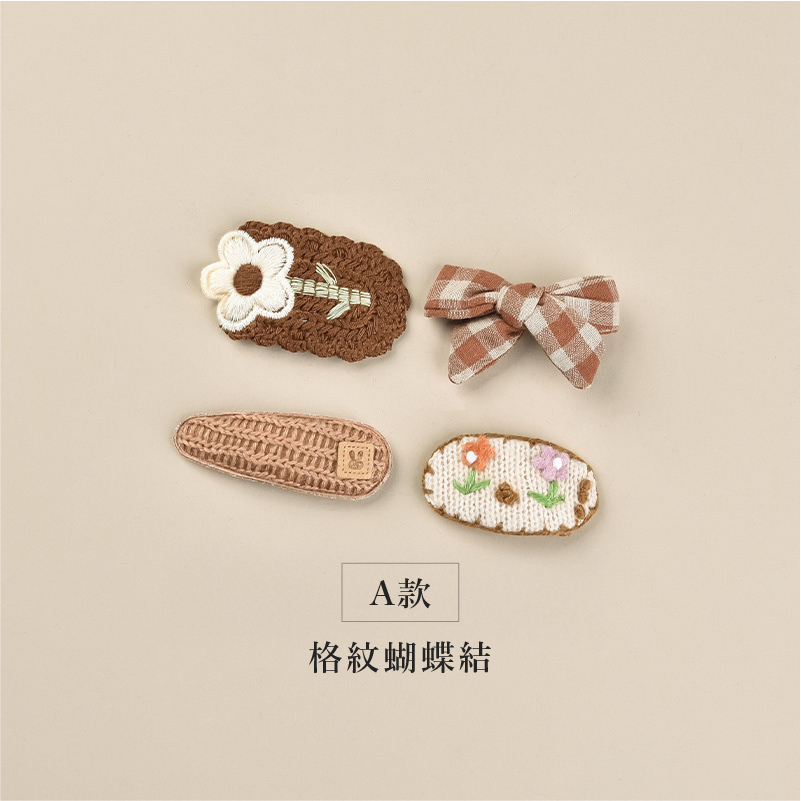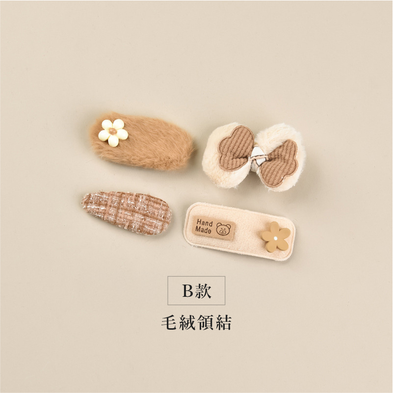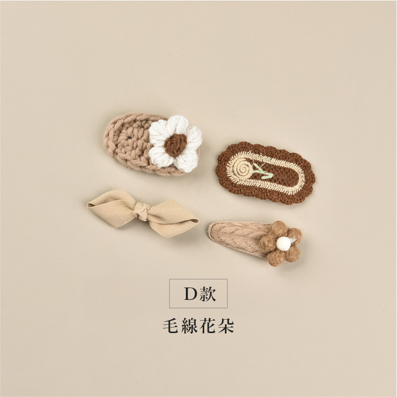 【BP064】韓版奶茶毛線不傷髮寶寶瀏海髮夾(四件組)(6款)
