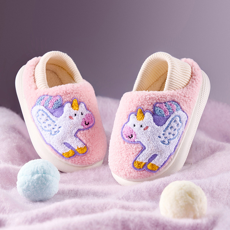 【SH011】粉紅獨角獸毛絨全包室內拖鞋(1色)