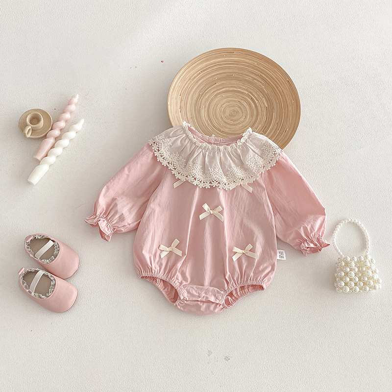 【BA903】花花蕾絲領長袖包屁衣(1色)