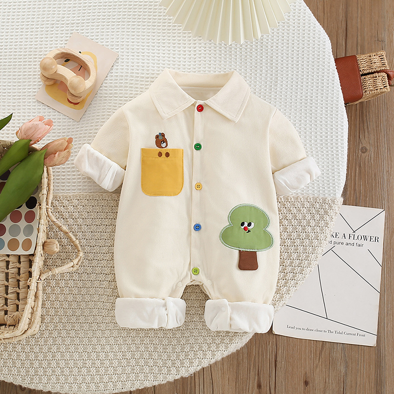 【BA908】日系彩虹鈕扣刺繡熊熊長袖包屁衣(1色)
