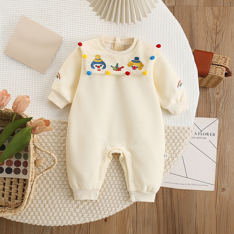 【BA909】日系刺繡小丑嘉年華長袖包屁衣(1色)