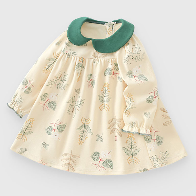 【BG916】日系甜美森系樹葉純棉長袖洋裝(1色)