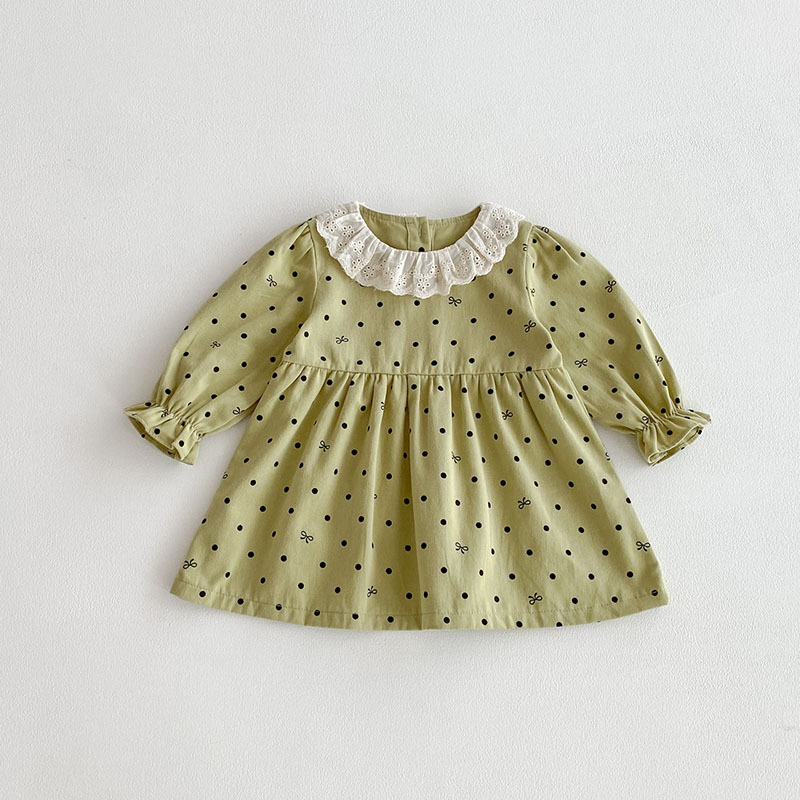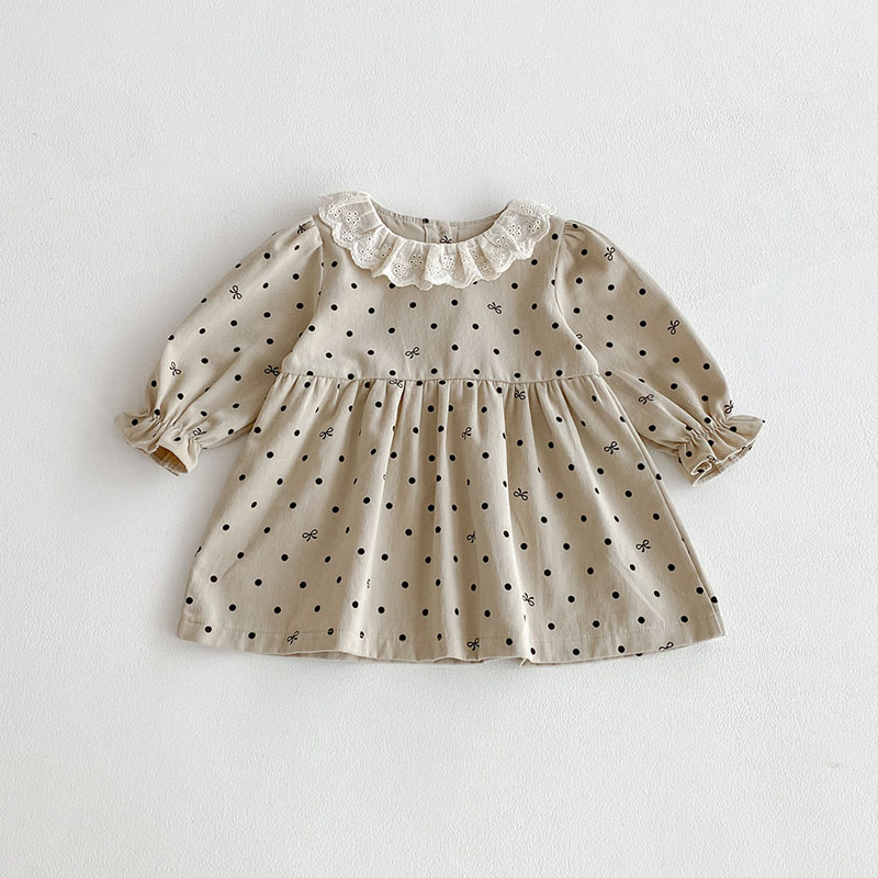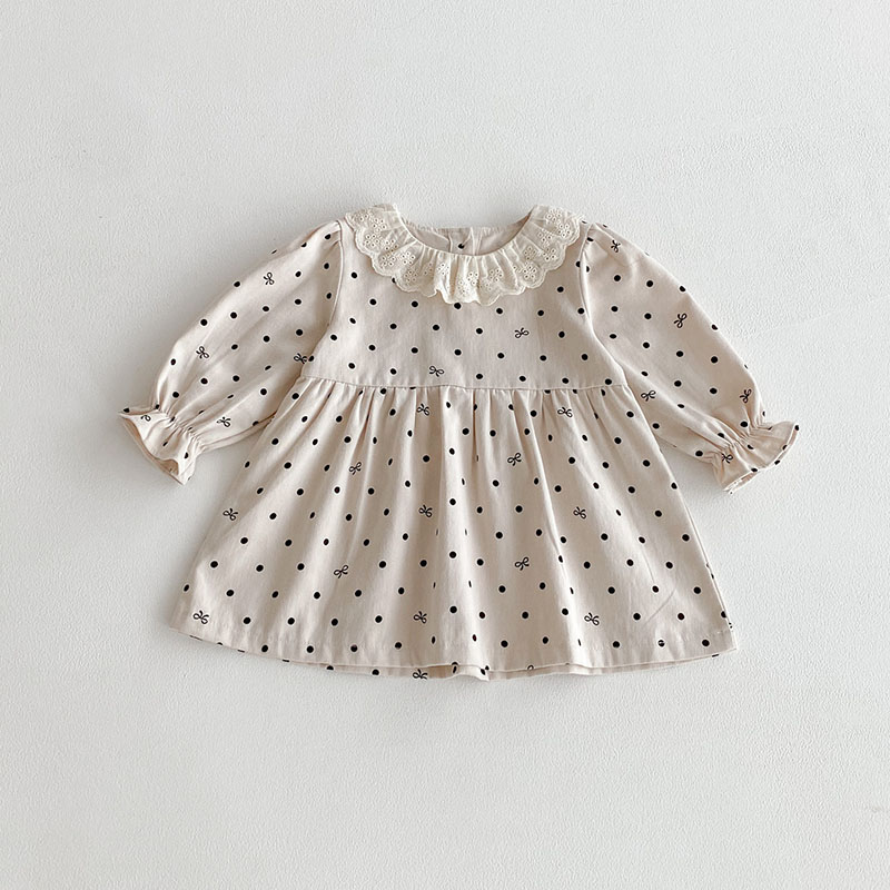 【BG931】韓版蝴蝶結點點長袖洋裝(3色)