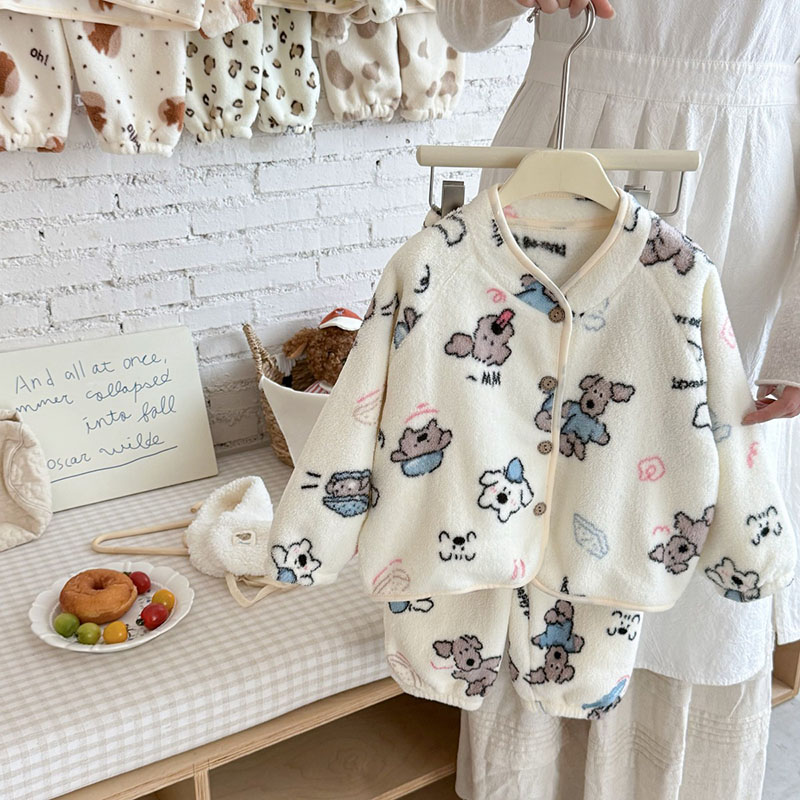 【HB038】軟綿狗狗立領法蘭絨成套睡衣(長袖/長褲)(1色)