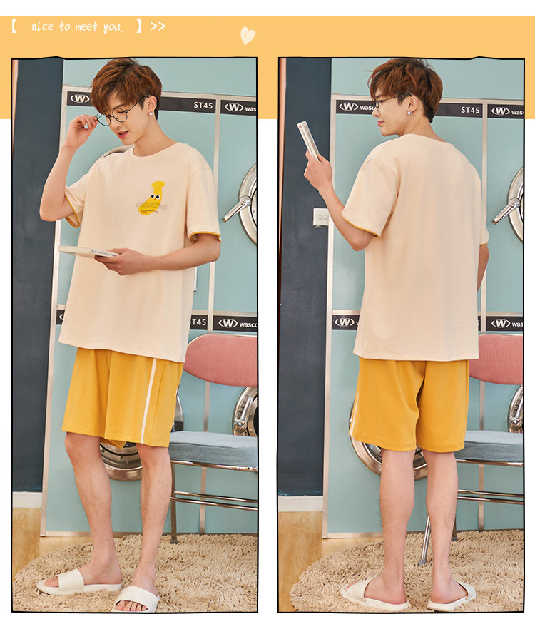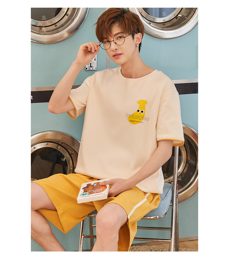 【H055】日系滿版香蕉寬鬆成套睡衣褲(情侶款)(短袖/短褲)