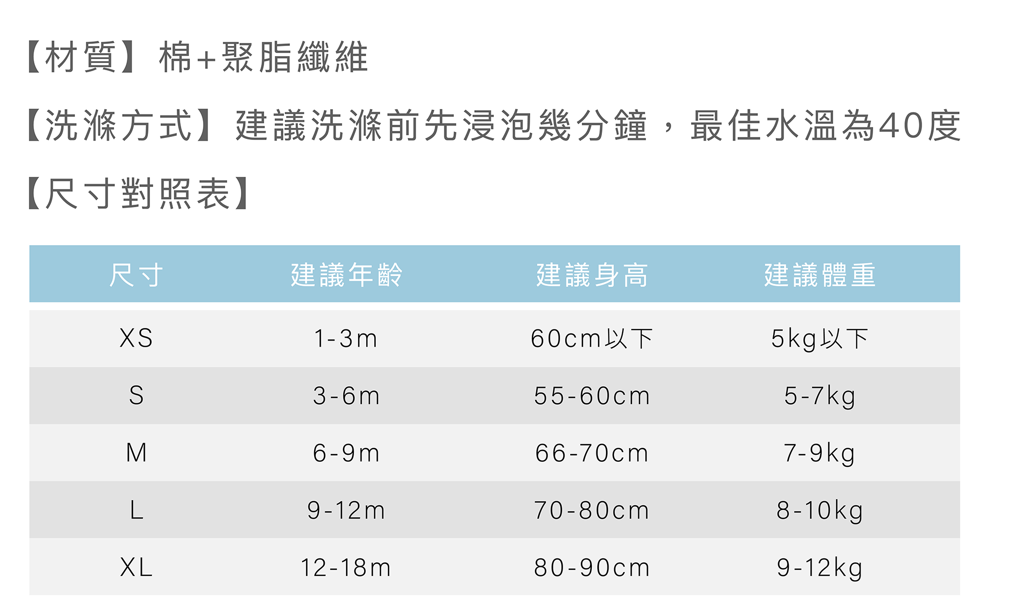 童裝尺碼
