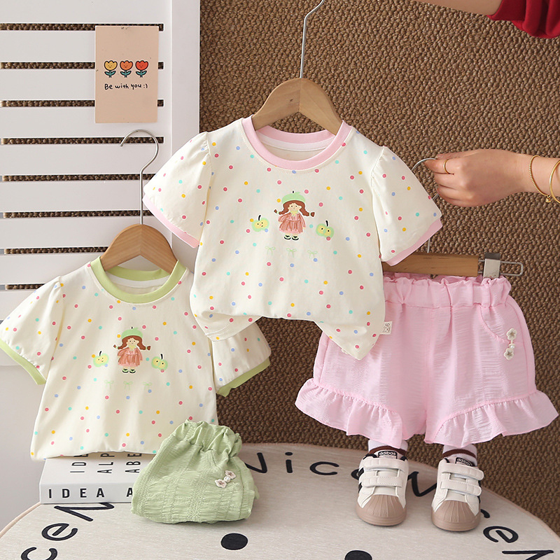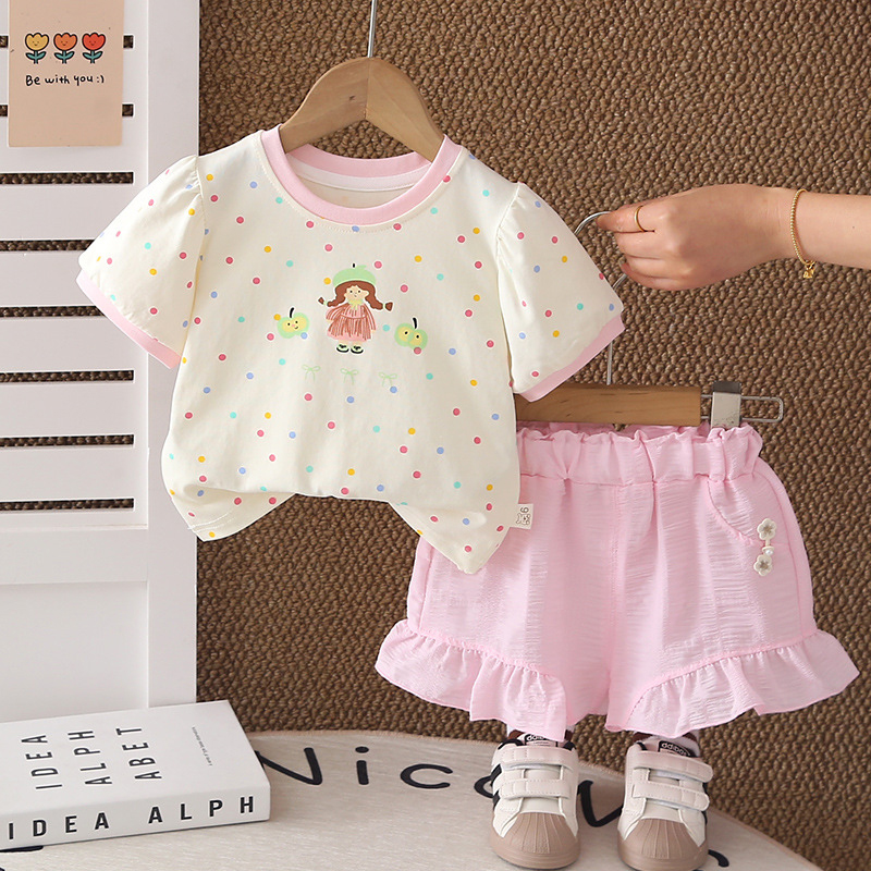 【BE272】日系女孩公主袖短袖短褲套裝(2色)
