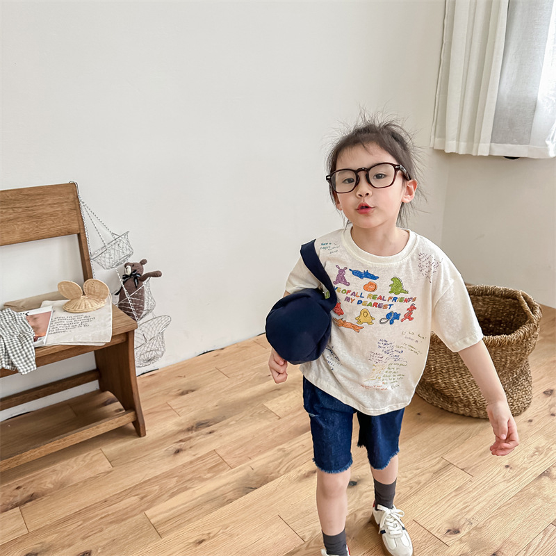 【BU291】韓版個性彩色塗鴉短袖上衣(2色)