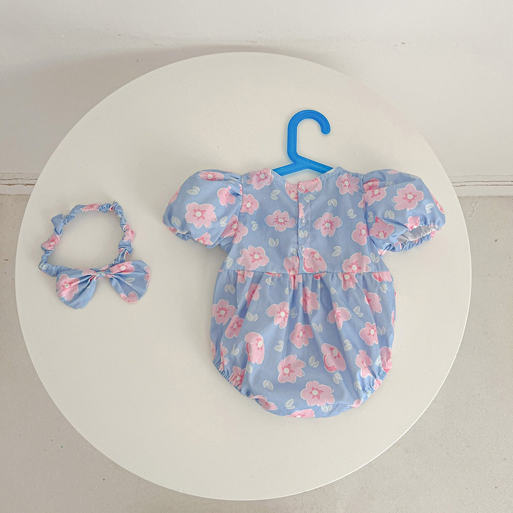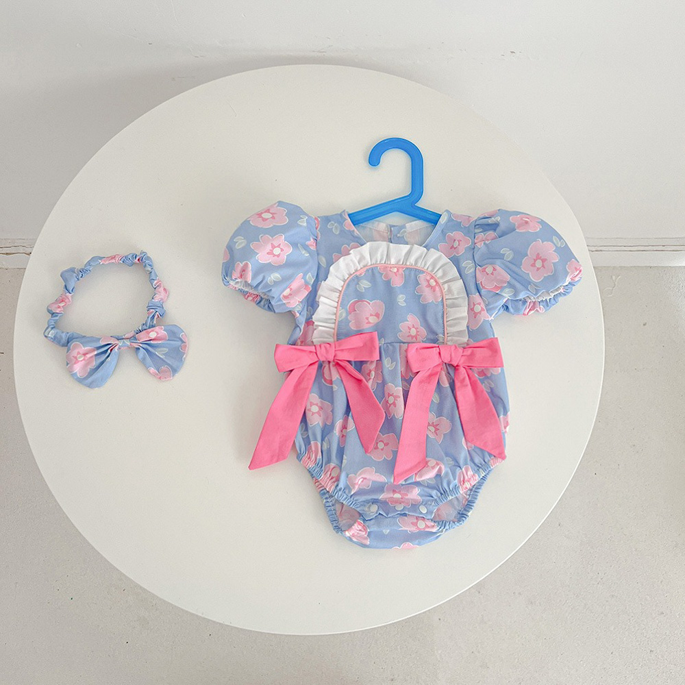 【BSA098】韓版雙蝴蝶結小花短袖包屁衣(送髮帶)(1色)