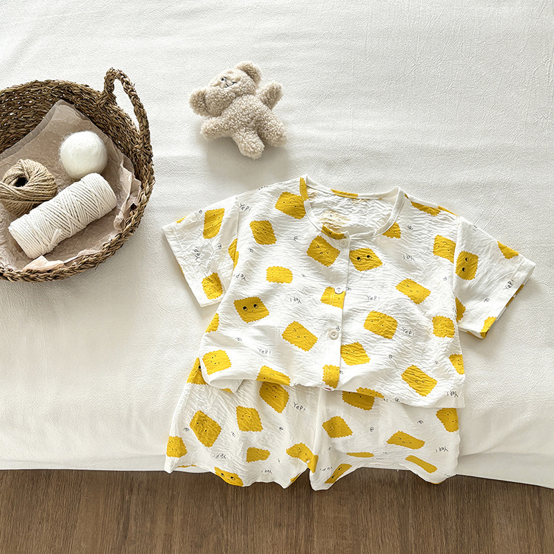 【HB049】夏日美味餅乾薄款開扣成套睡衣(短袖/長褲)(1色)