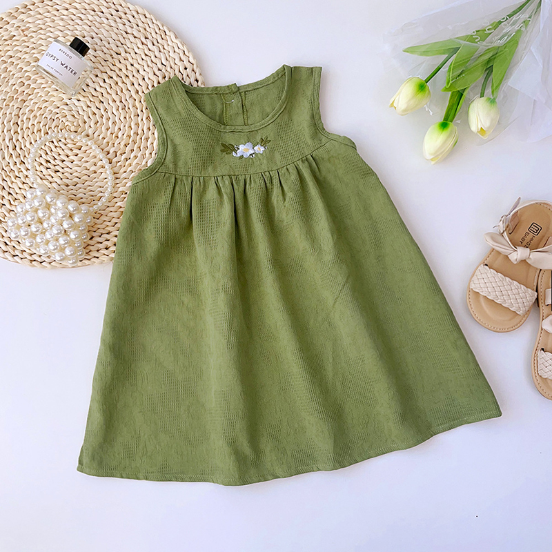 【BG958】日雜森系小花刺繡壓紋背心洋裝(2色)
