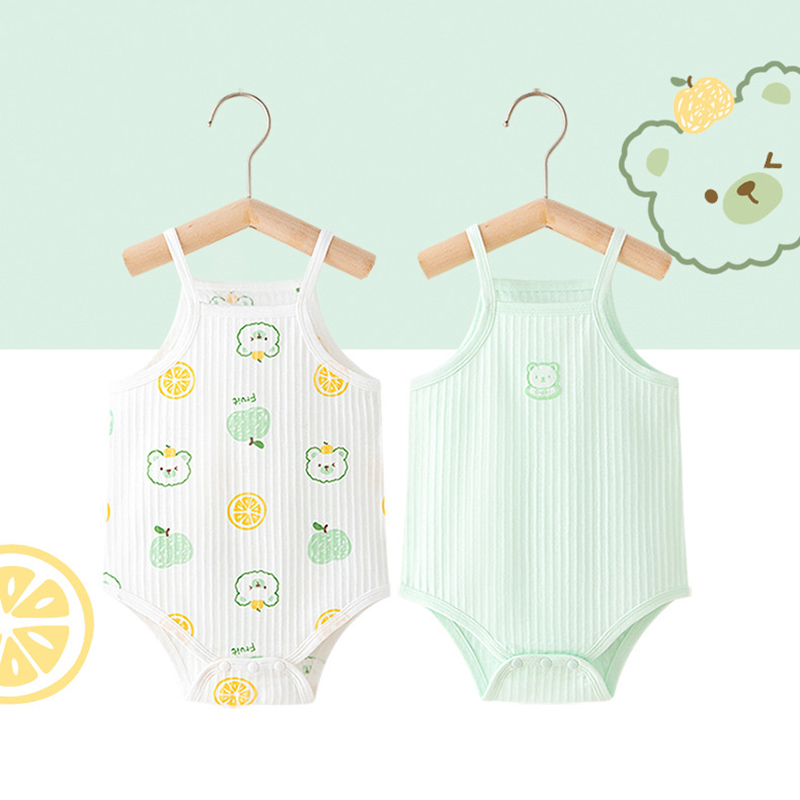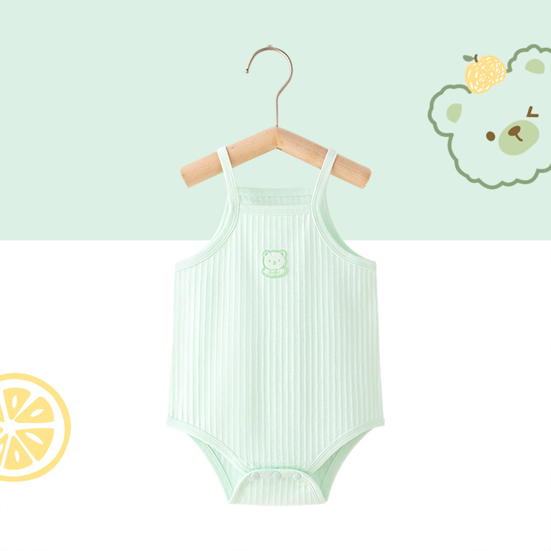 【BA1025】夏日居家蘋果熊綠舒適細肩包屁衣(2件組)(1色)