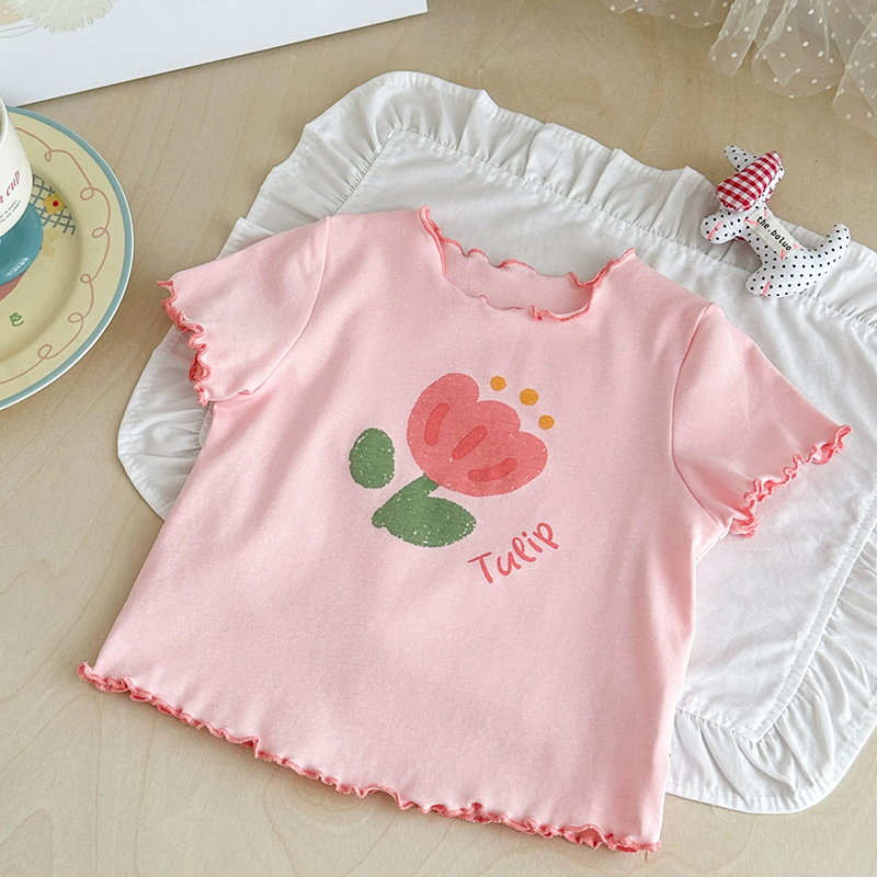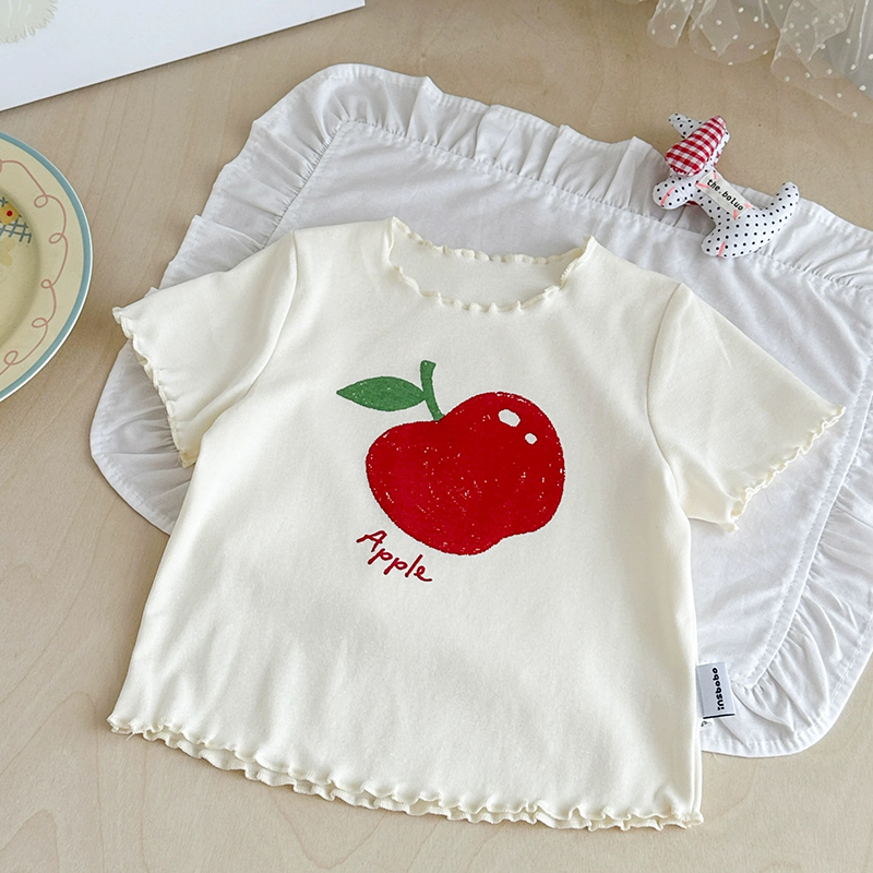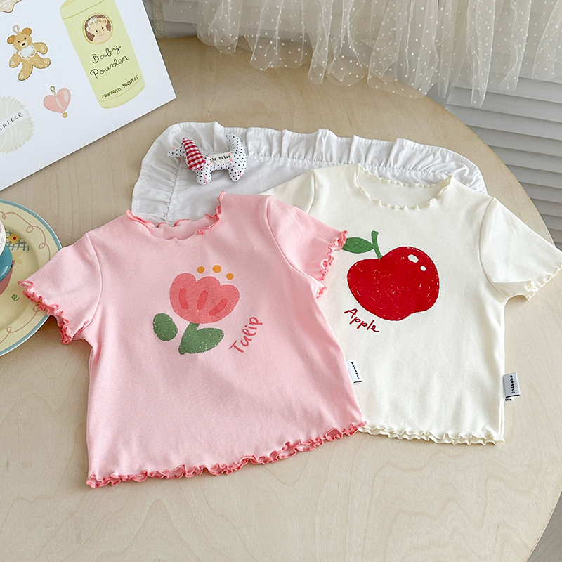 【BU311】日系木耳邊小花蘋果短袖上衣(2色)