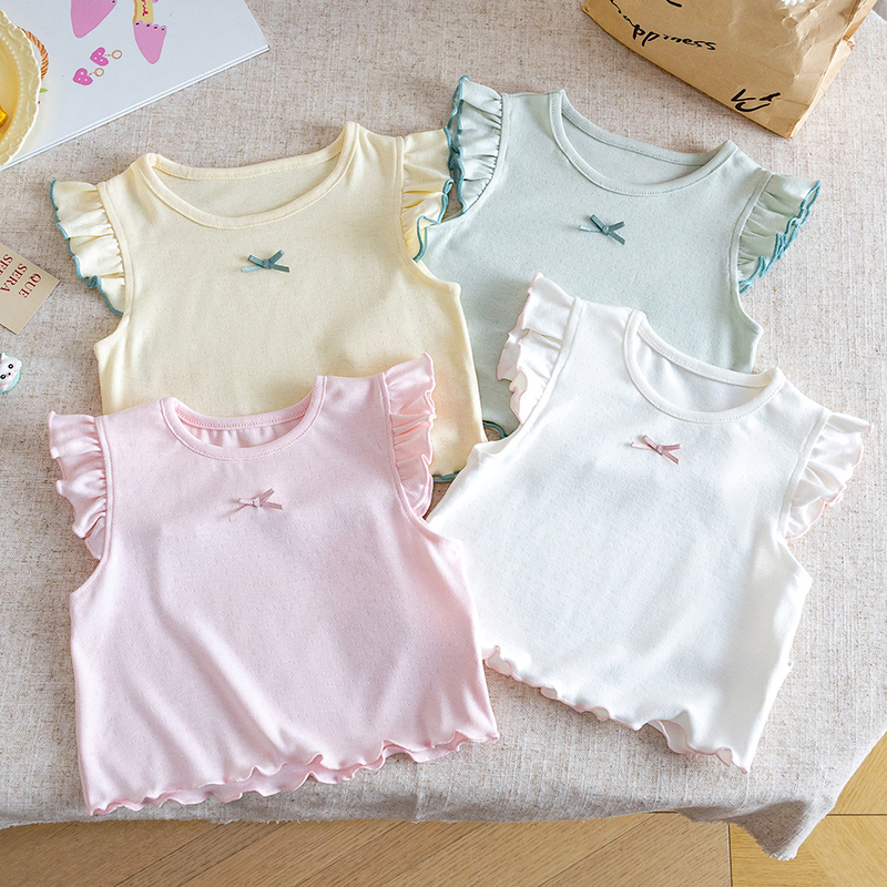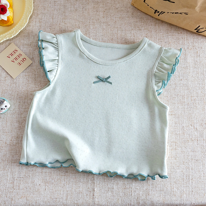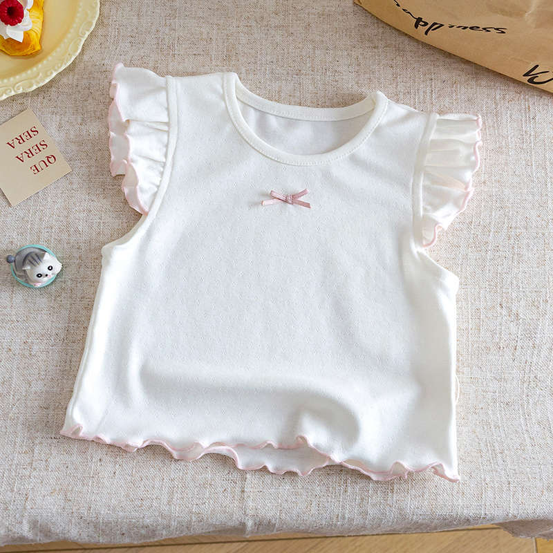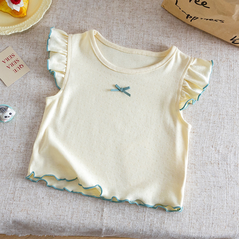 【BU312】日系蝴蝶結花邊小飛袖上衣(4色)