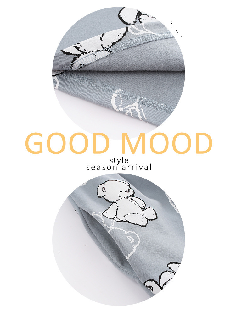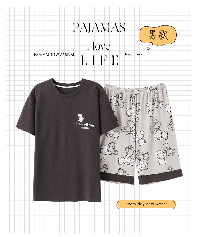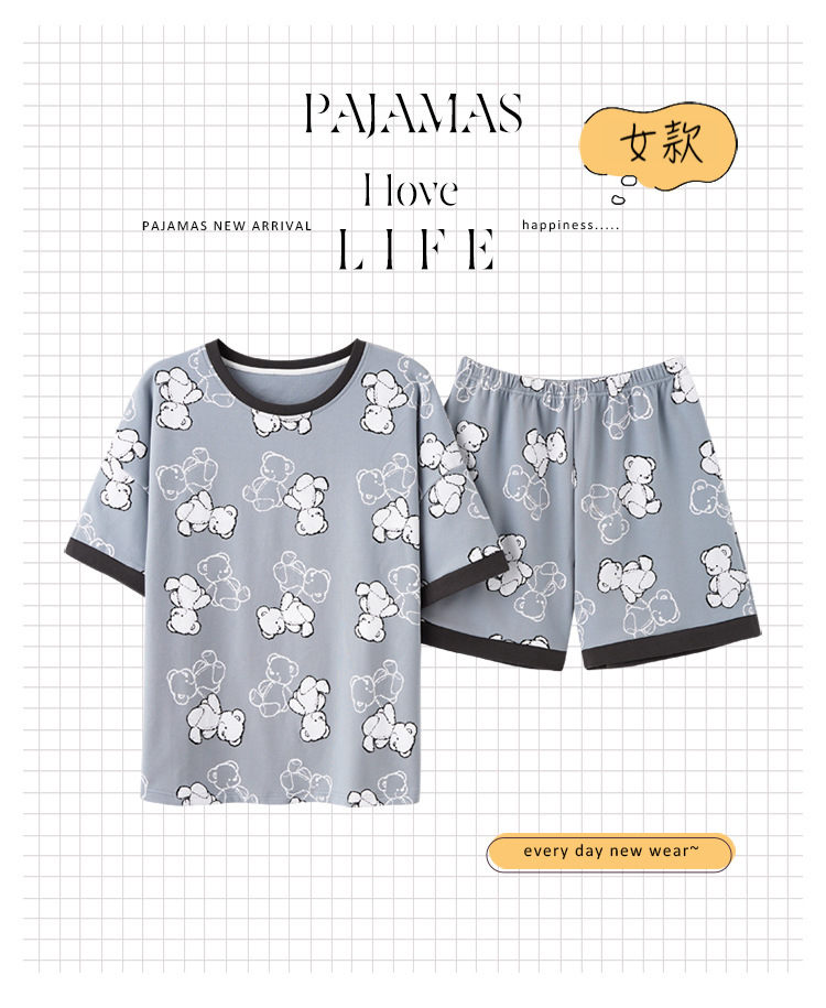 【H100】日系淺藍玩偶熊寬鬆成套睡衣褲(情侶款)(短袖/短褲)