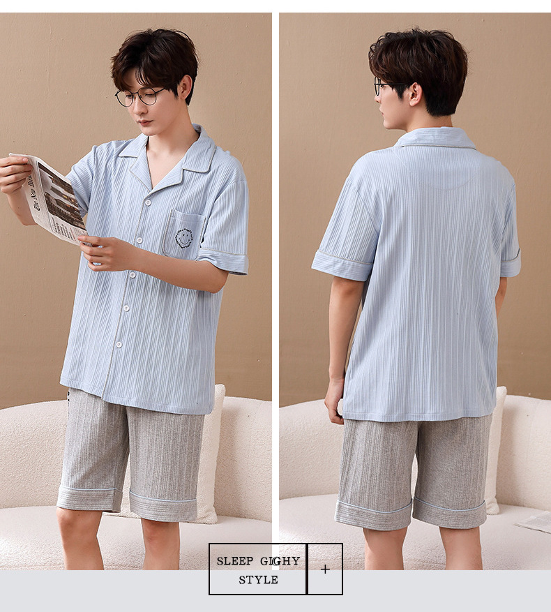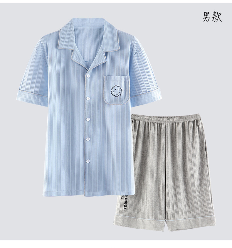 【H110】日系笑臉字母寬鬆成套睡衣褲裙(情侶款)(短袖/短褲)