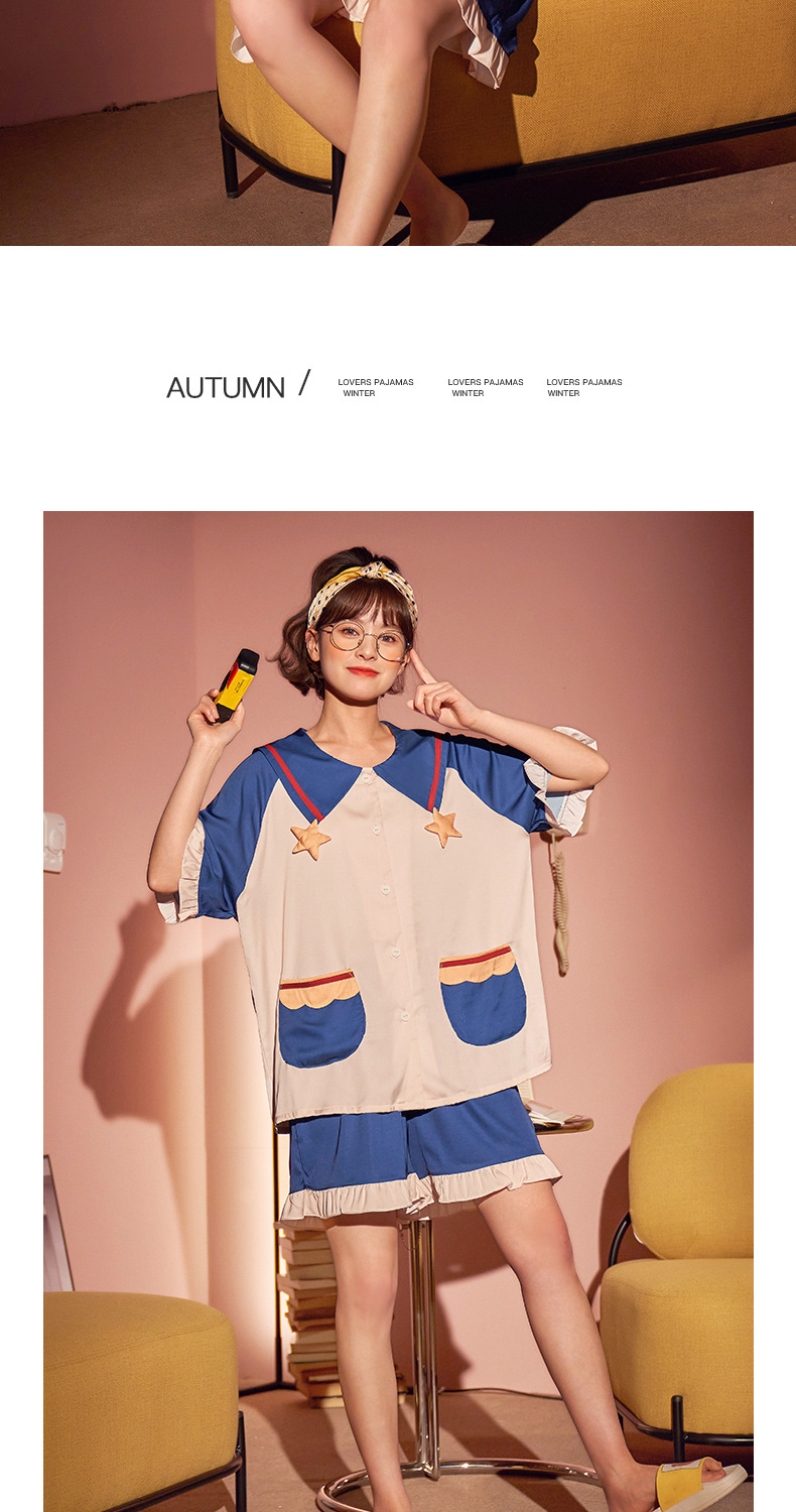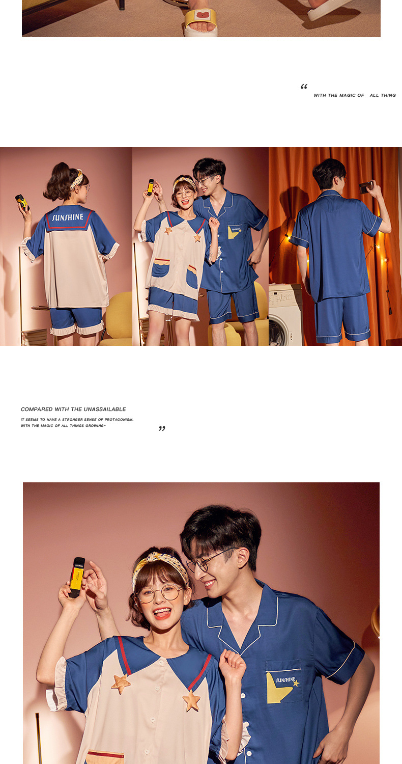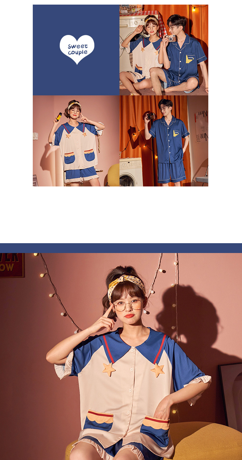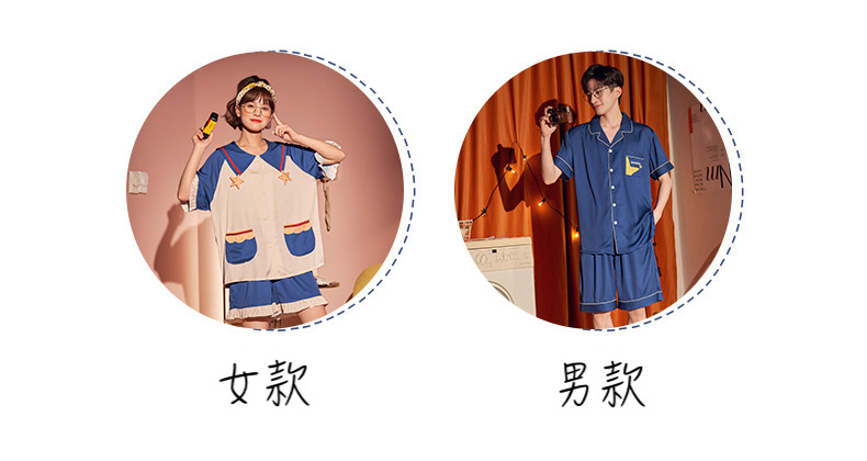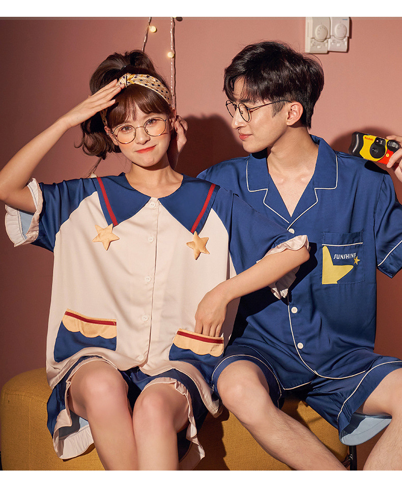【H129】日系冰絲涼感星星寬鬆成套睡衣褲(情侶款)(短袖/短褲)