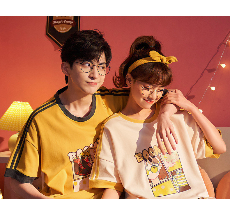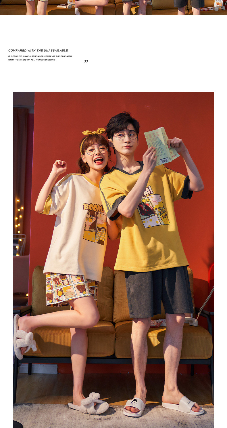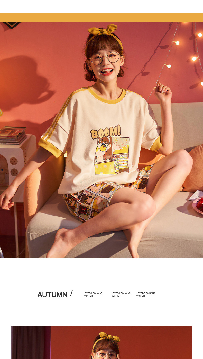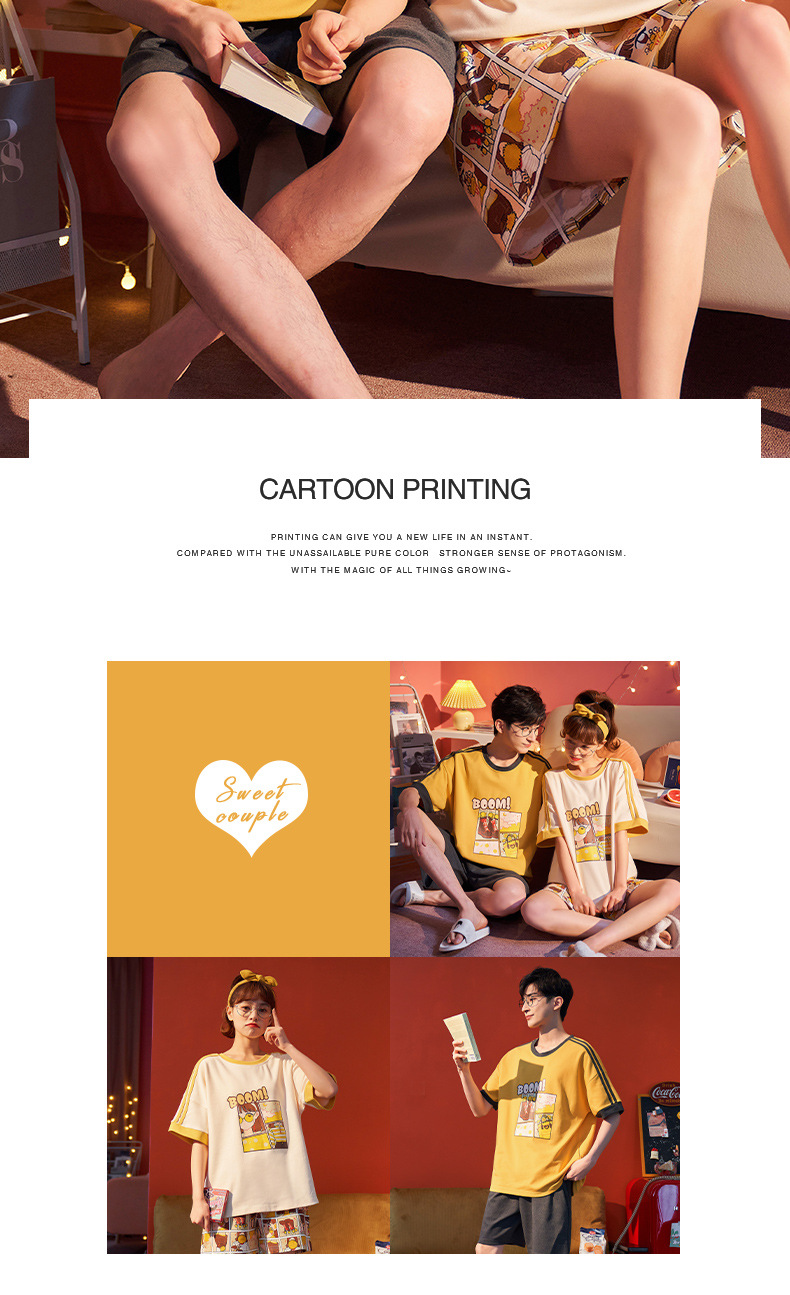 【H151】日系漫畫風寬鬆成套睡衣褲(情侶款)(短袖/短褲)