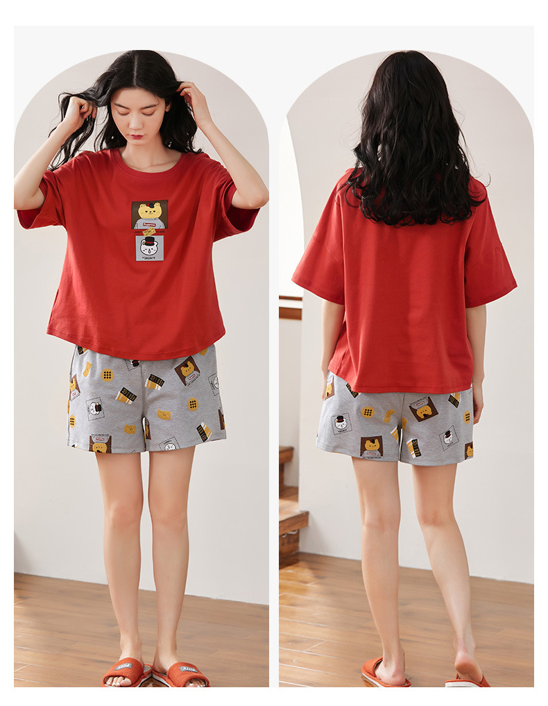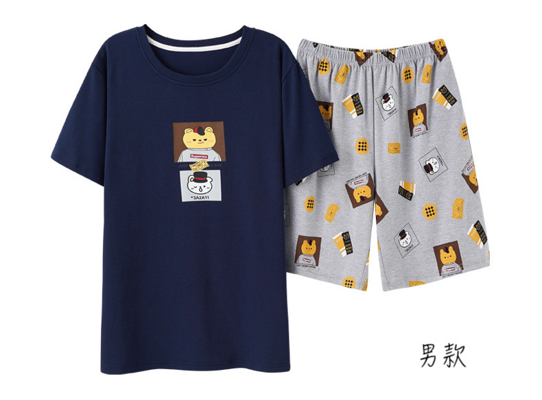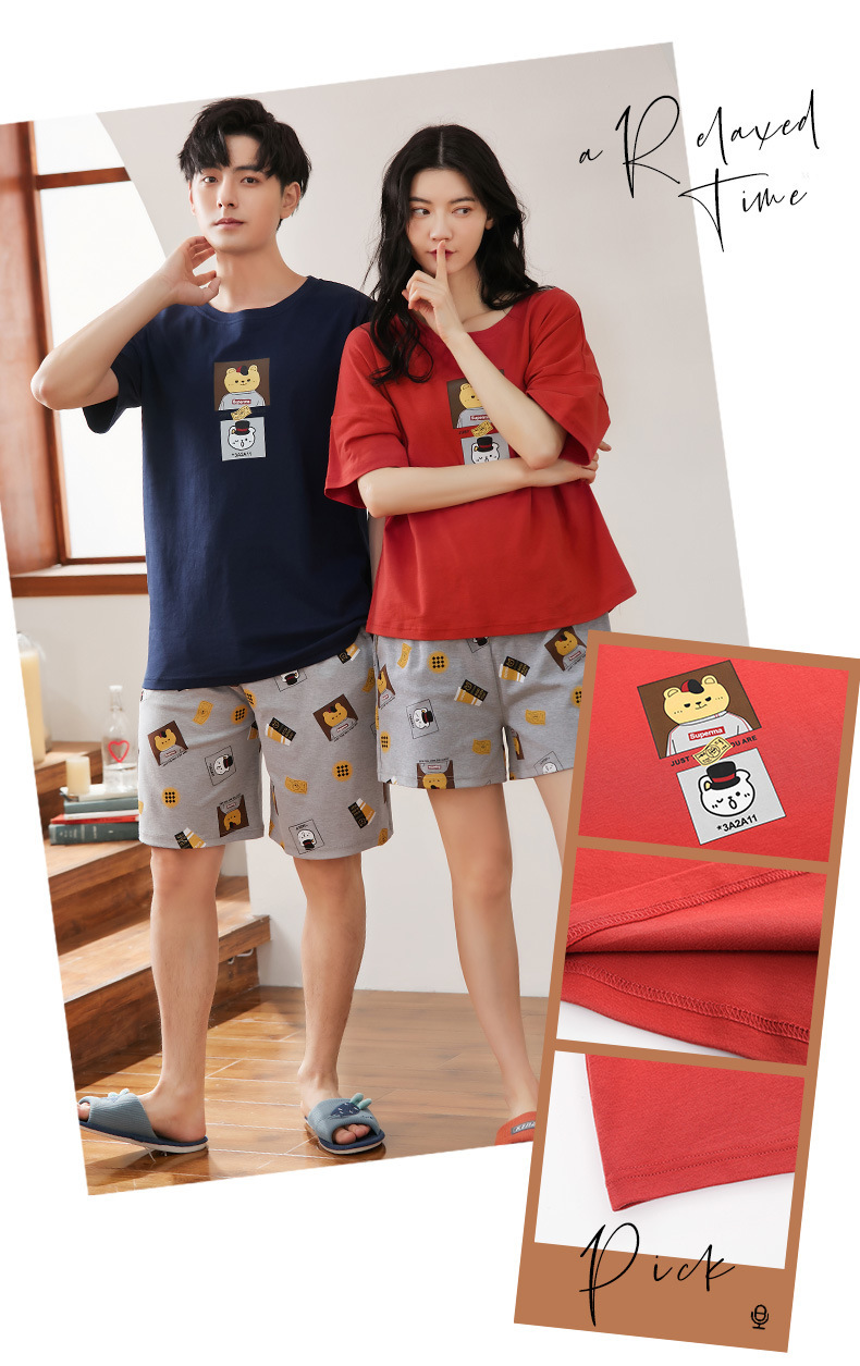 【H144】日系帽子貓寬鬆成套睡衣褲(情侶款)(短袖/短褲)
