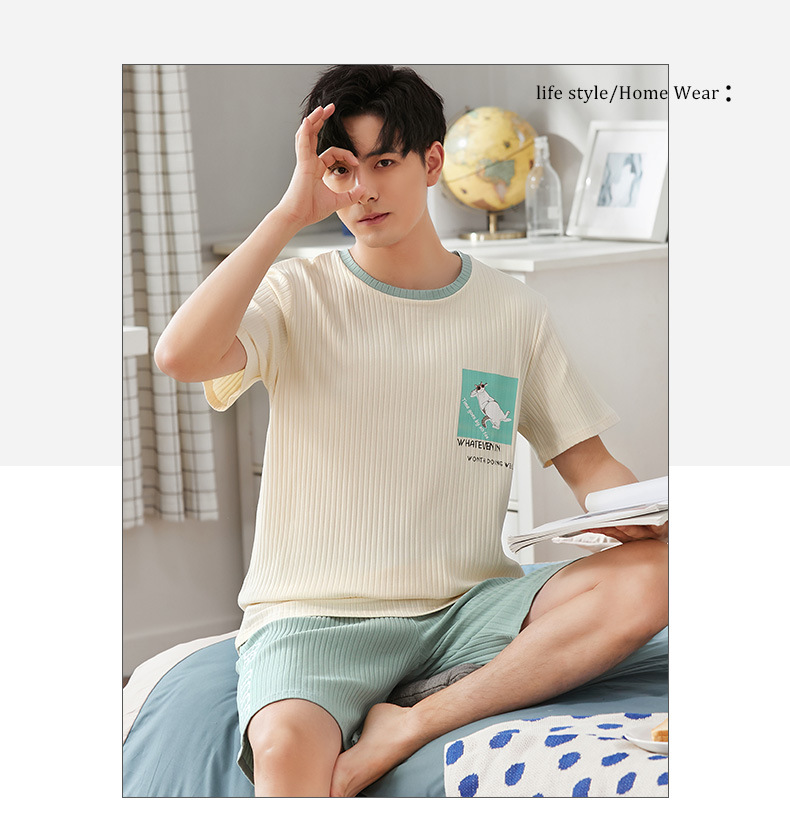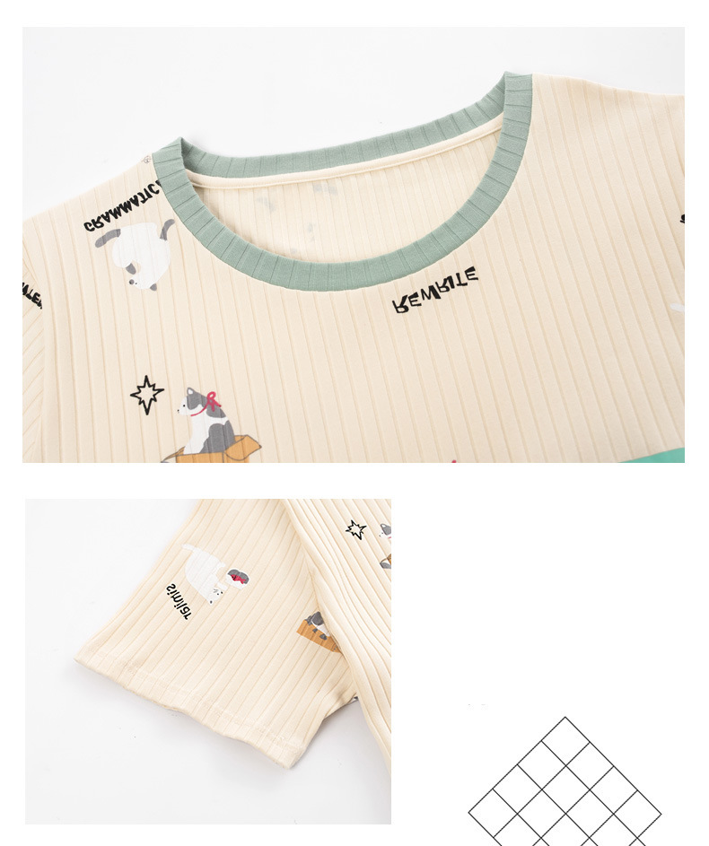 【H163】日系慵懶小貓寬鬆成套睡衣褲(情侶款)(短袖/短褲)