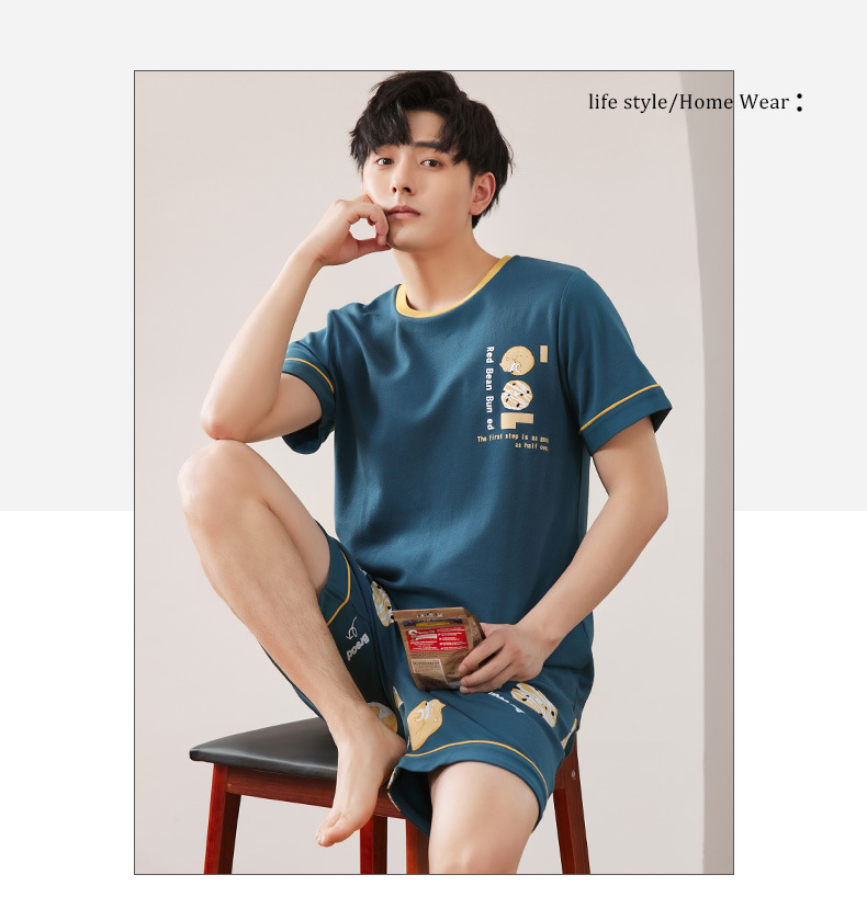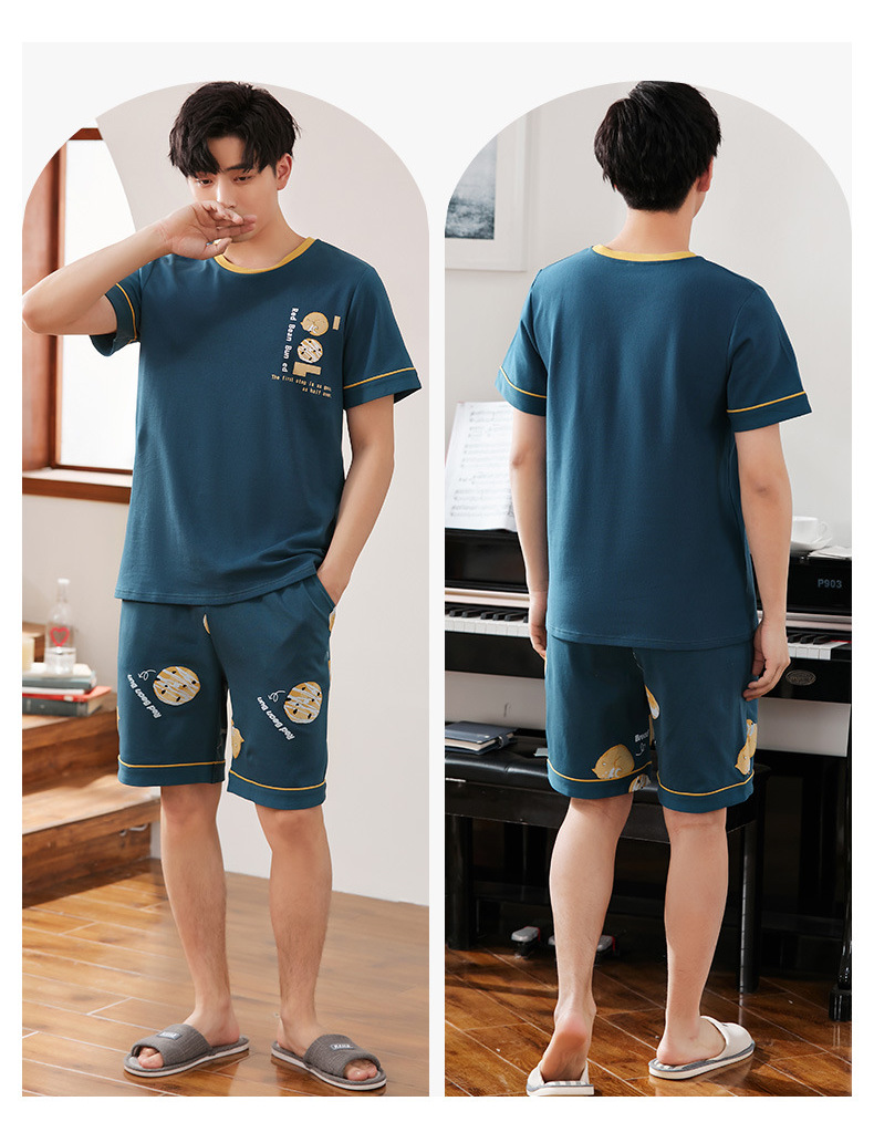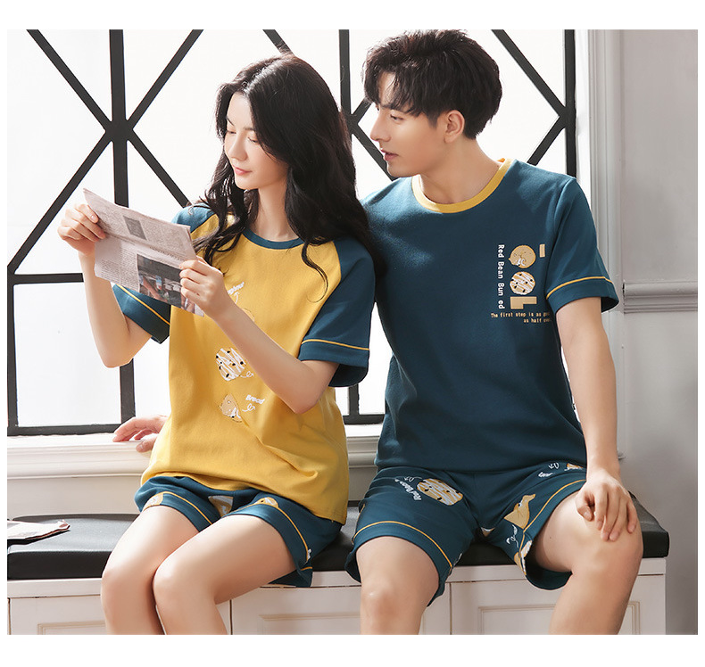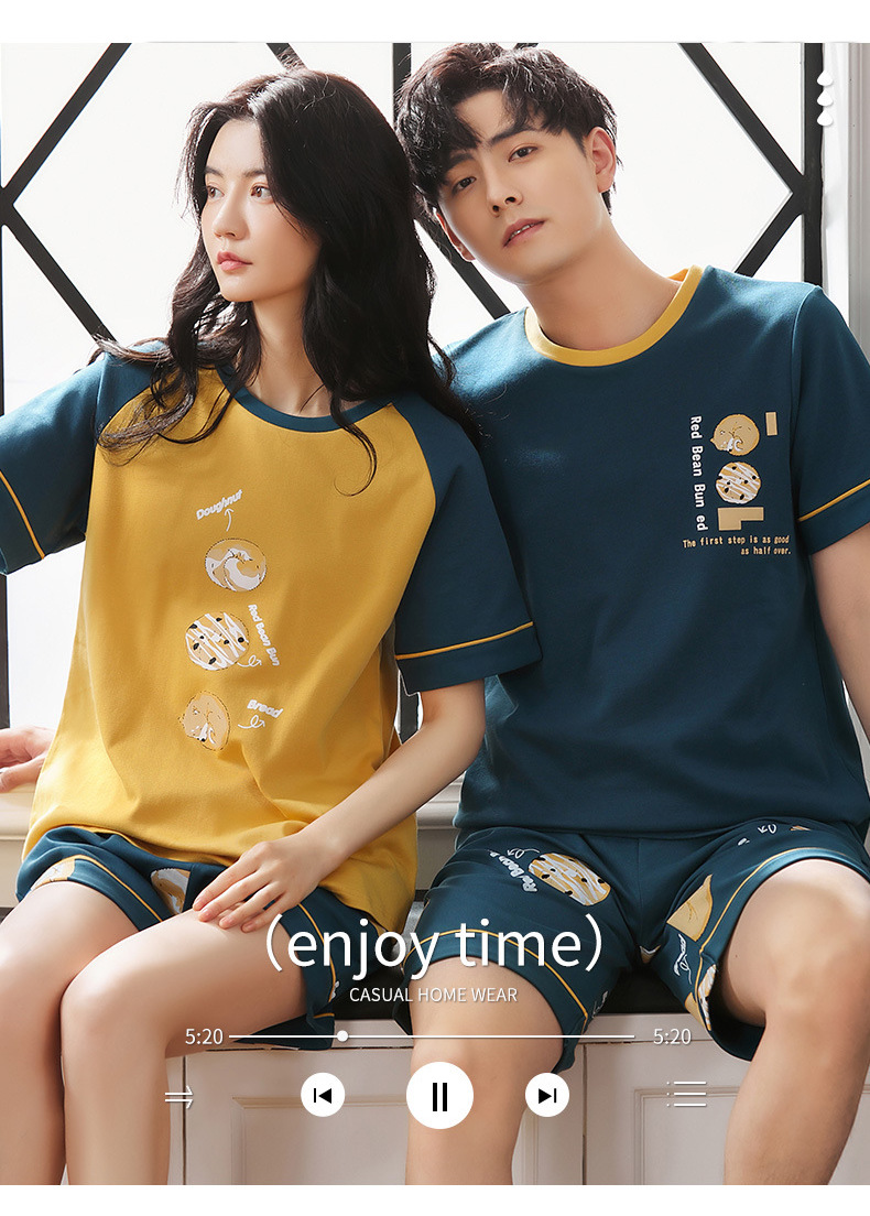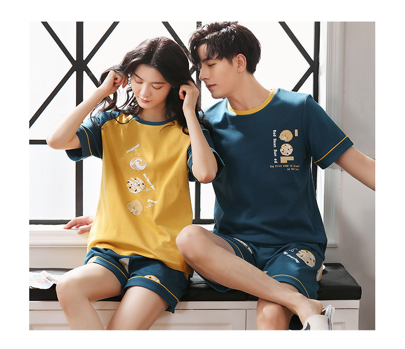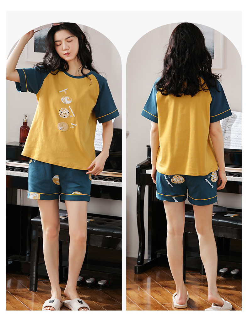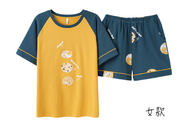 【H164】日系圓圈小狗寬鬆成套睡衣褲(情侶款)(短袖/短褲)