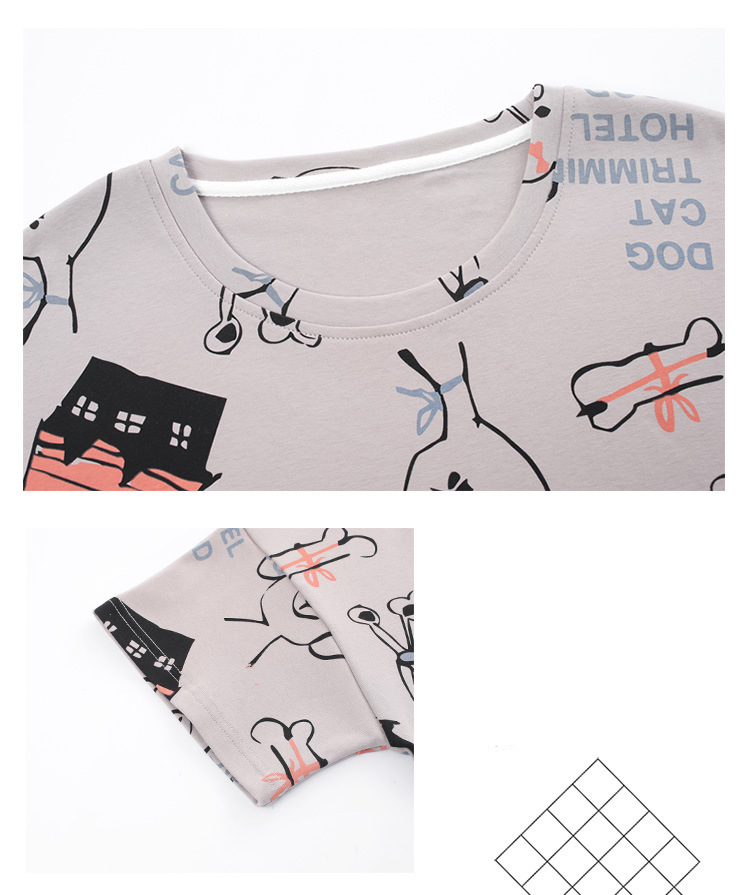 【H166】日系滿版貓狗寬鬆成套睡衣褲(情侶款)(短袖/短褲)