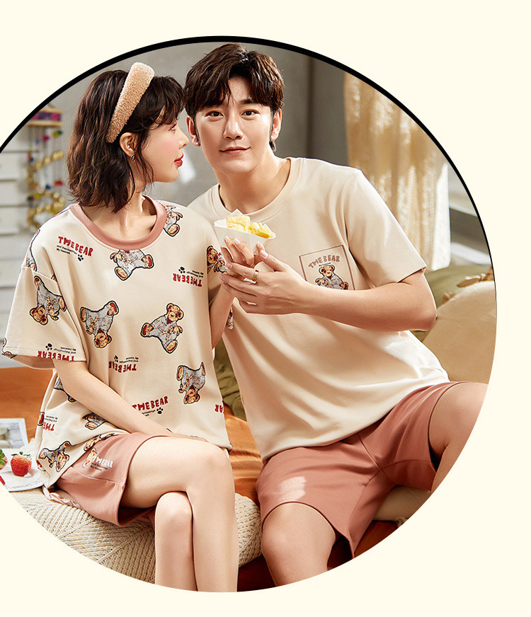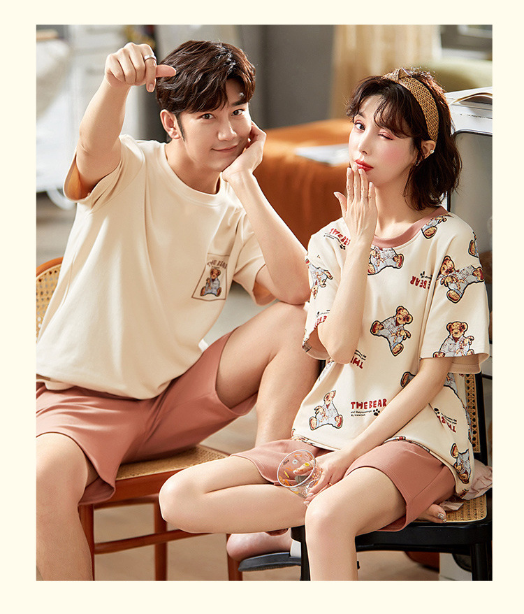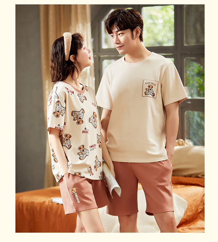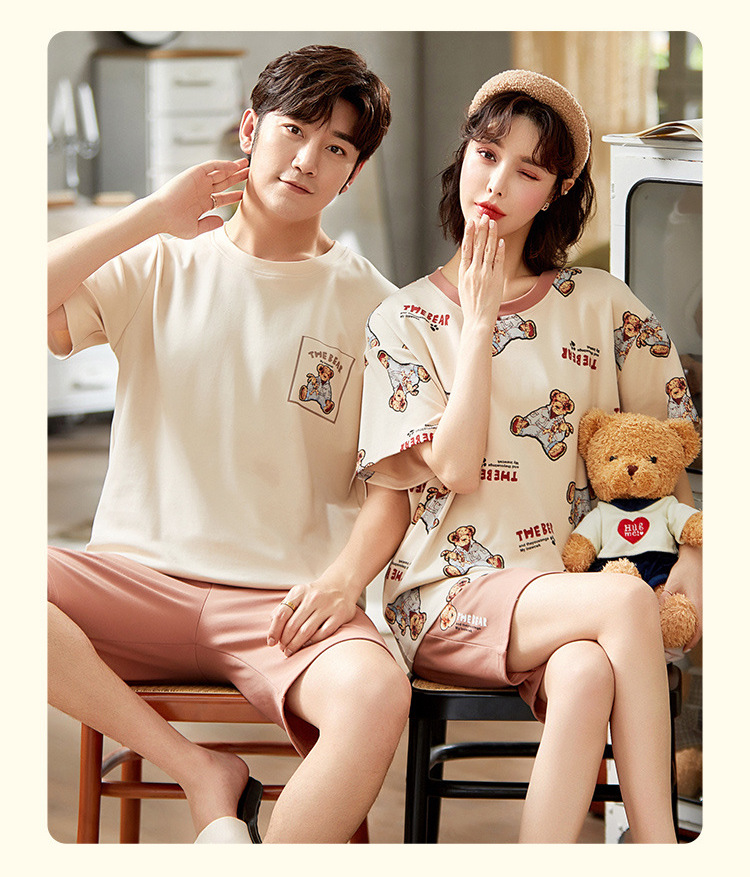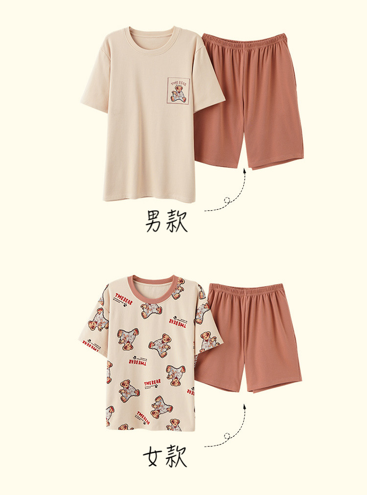 【H188】日系睡衣小熊寬鬆成套睡衣褲(情侶款)(短袖/短褲)