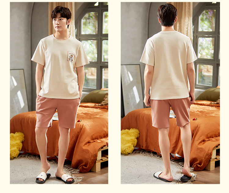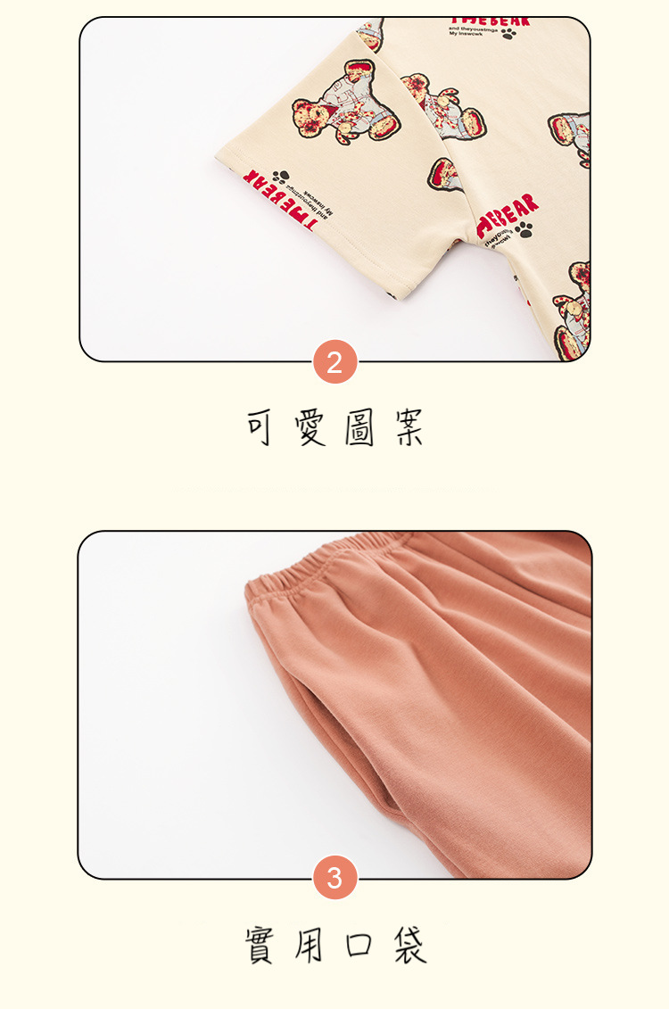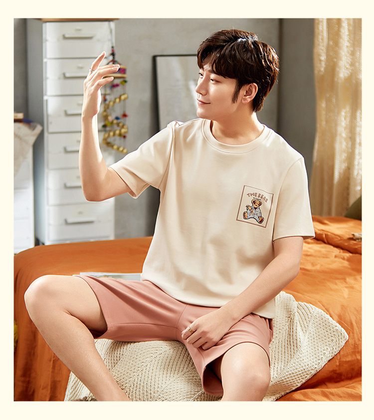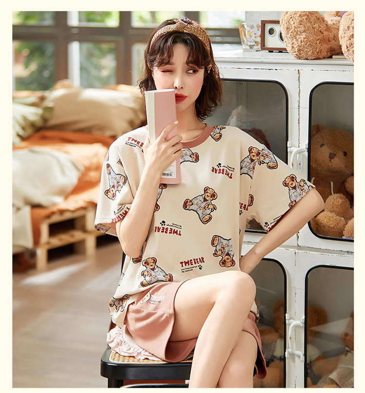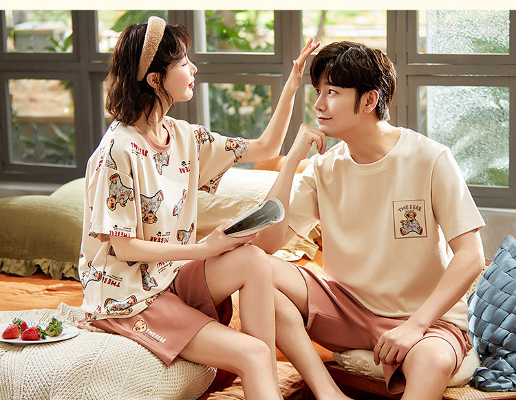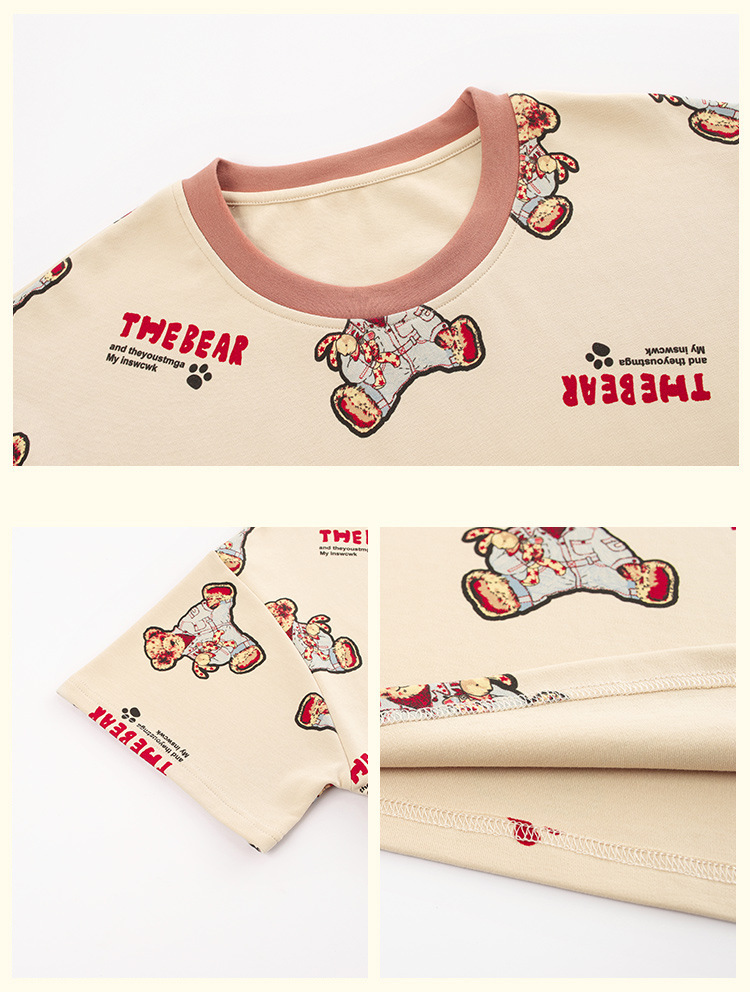 【H188】日系睡衣小熊寬鬆成套睡衣褲(情侶款)(短袖/短褲)