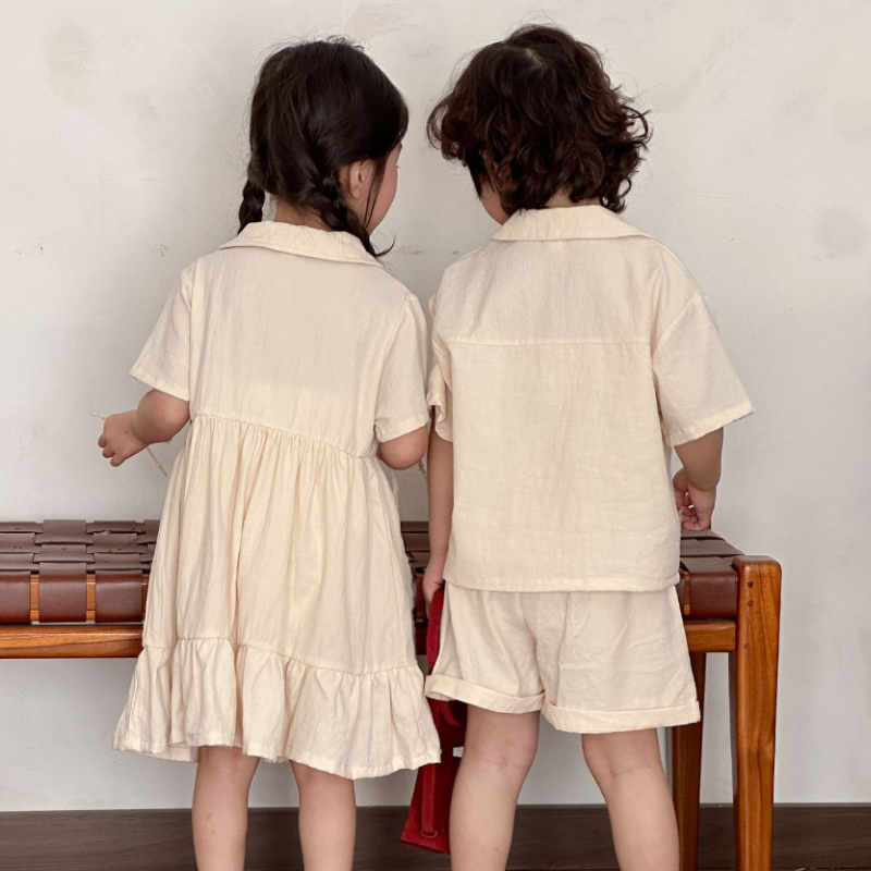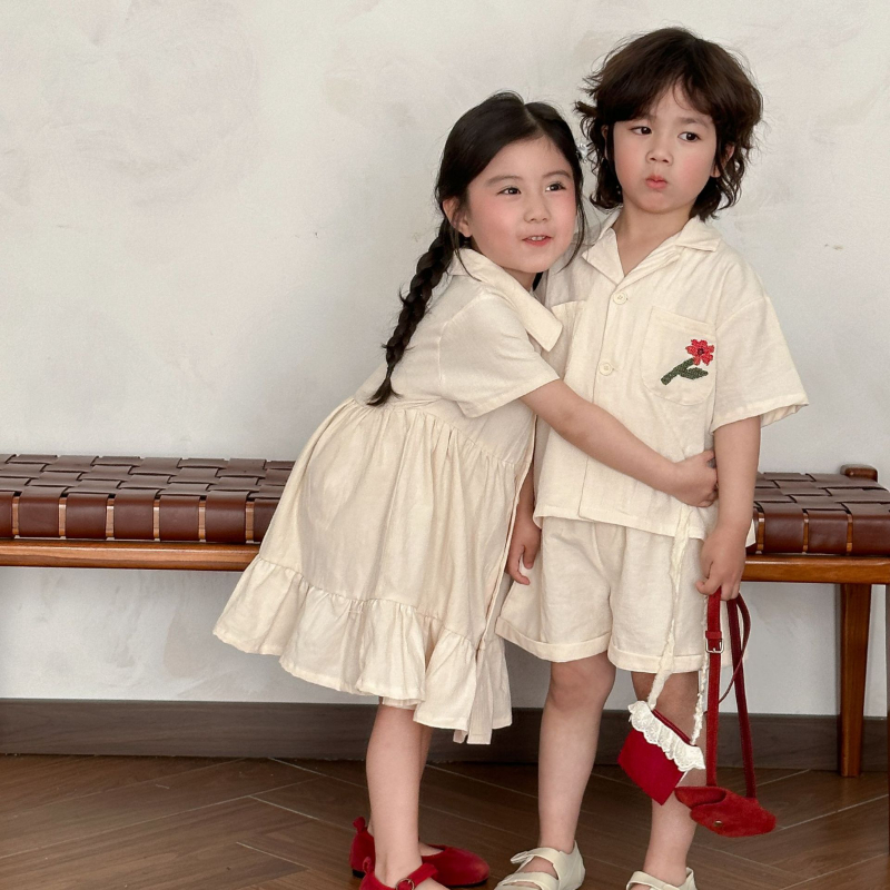 【BS242】日系刺繡小花兄妹短袖洋裝套裝(1色)
