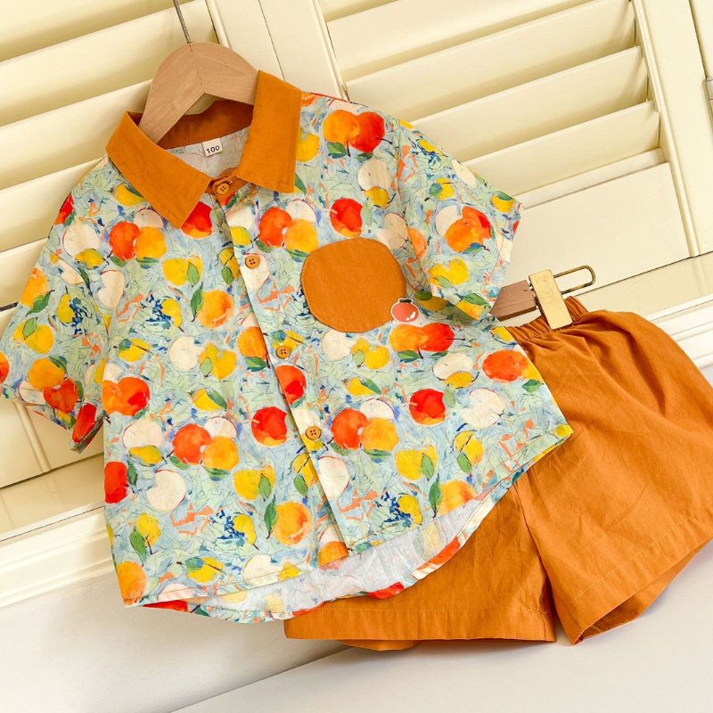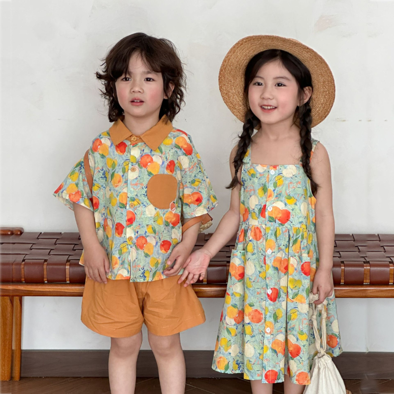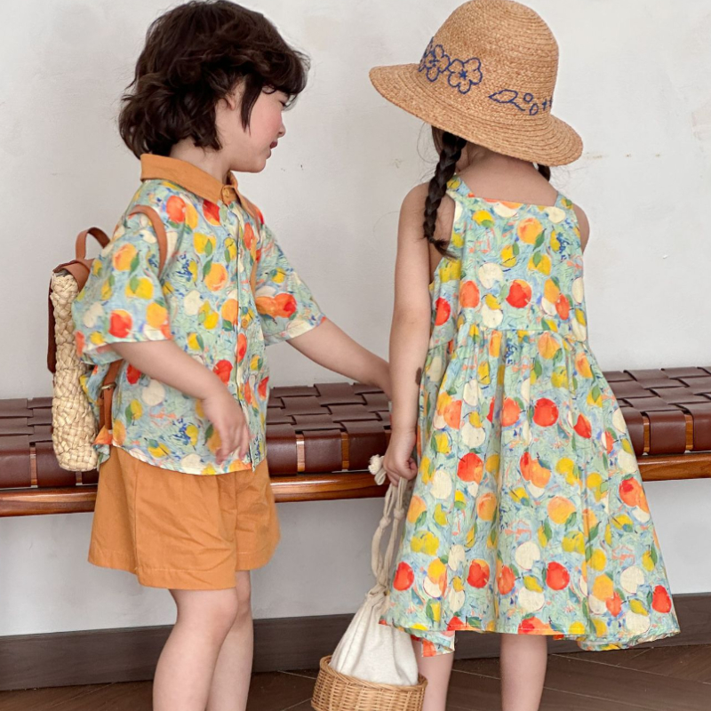 【BS244】日系水彩水果兄妹短袖洋裝套裝(1色)