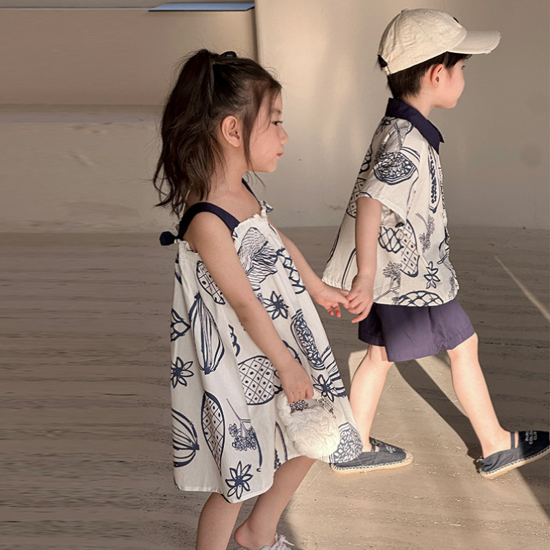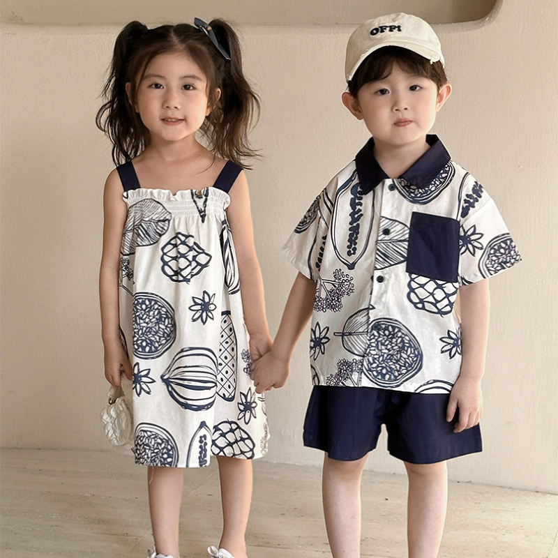 【BS247】日系線條水果兄妹短袖洋裝套裝(1色)